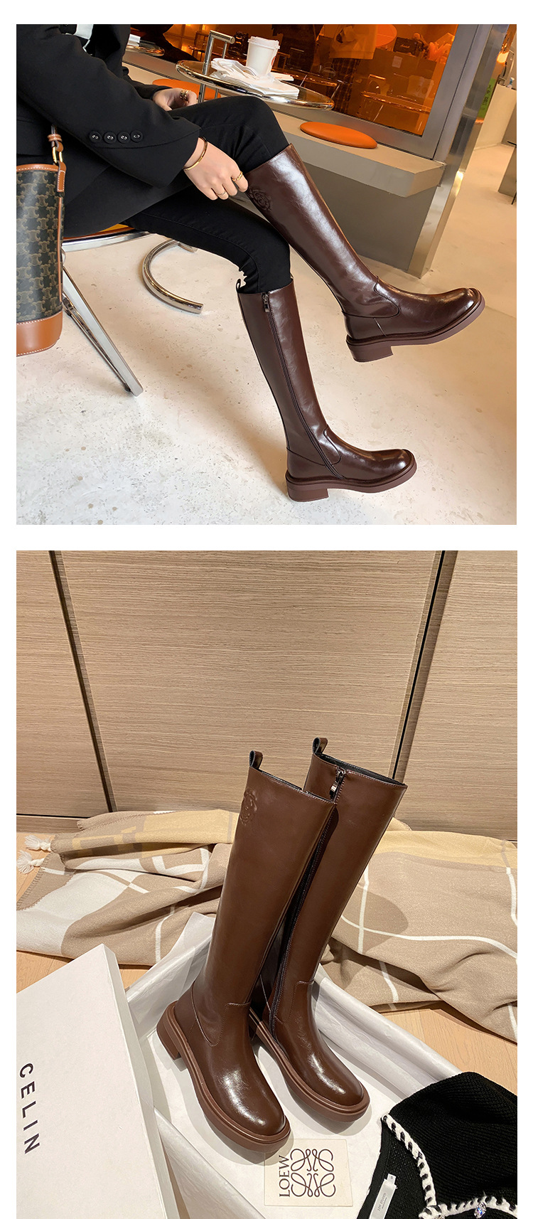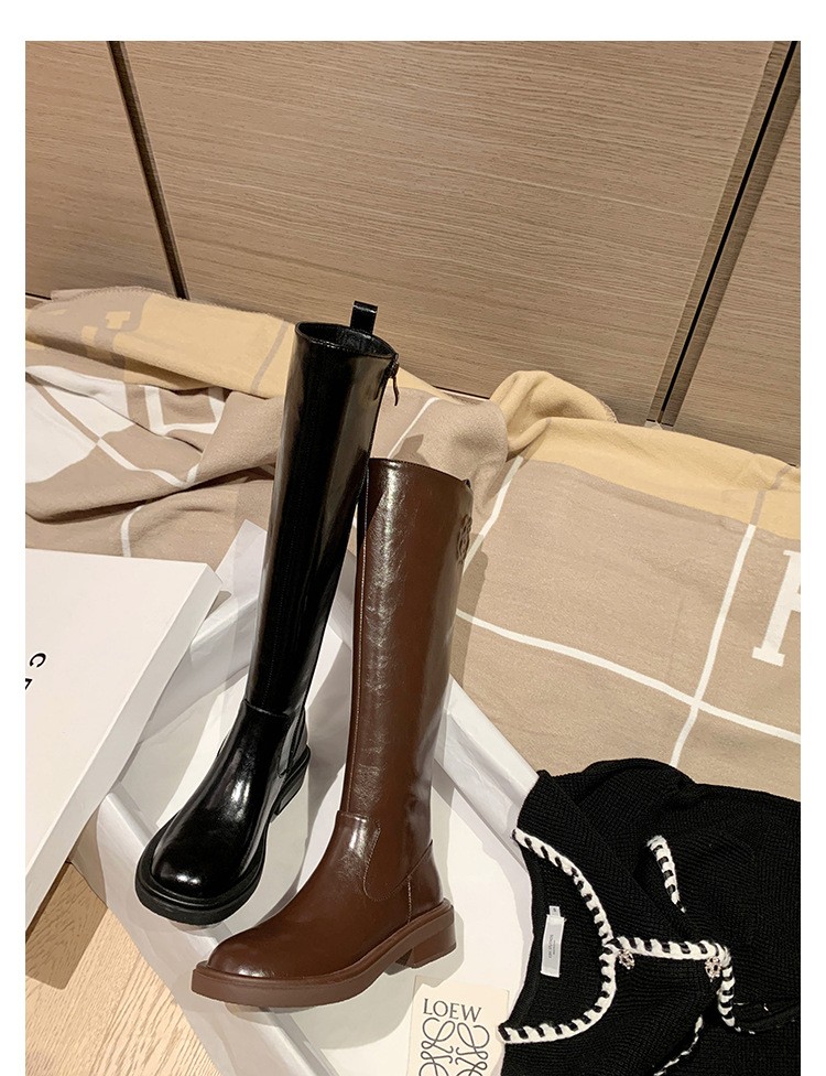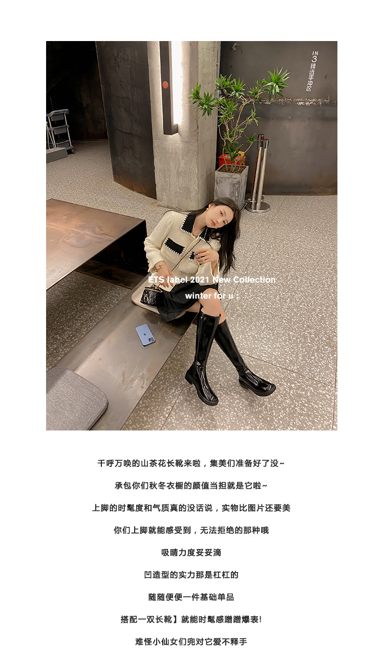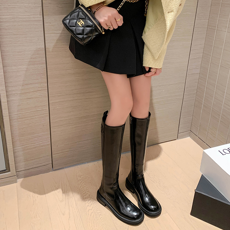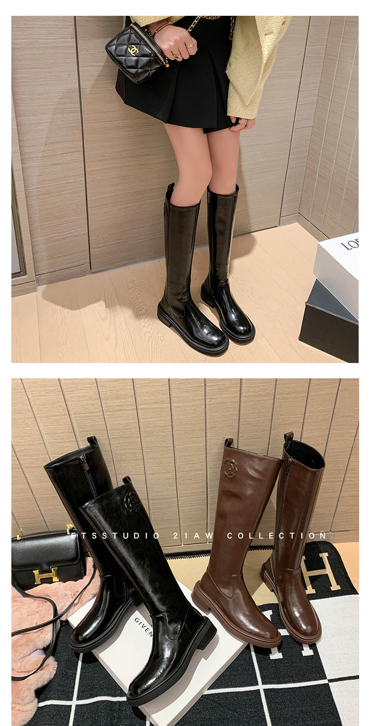 위안 서클 전체 소가죽 ~ 새로운 동백 가죽 높은 부츠 여성 기사 부츠 다크 브라운 부츠 작은 향기로운 부츠스토어 가기