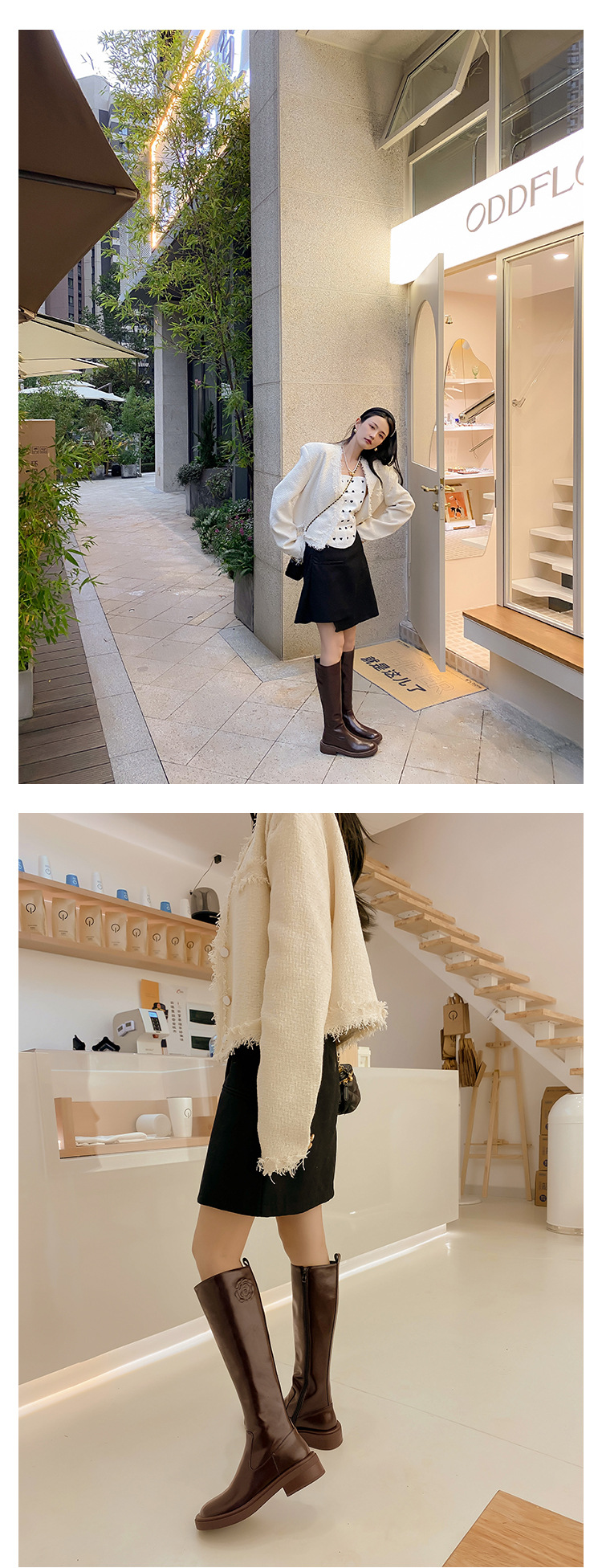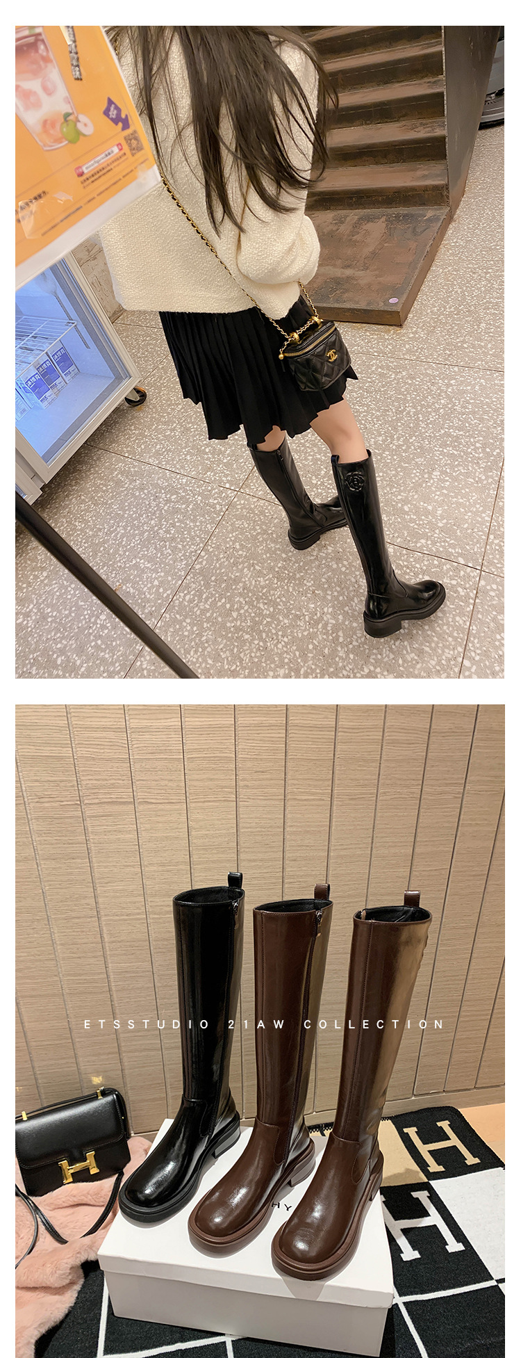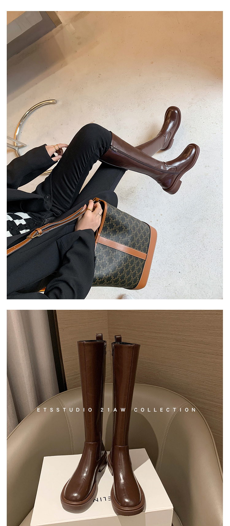 위안 서클 전체 소가죽 ~ 새로운 동백 가죽 높은 부츠 여성 기사 부츠 다크 브라운 부츠 작은 향기로운 부츠스토어 가기