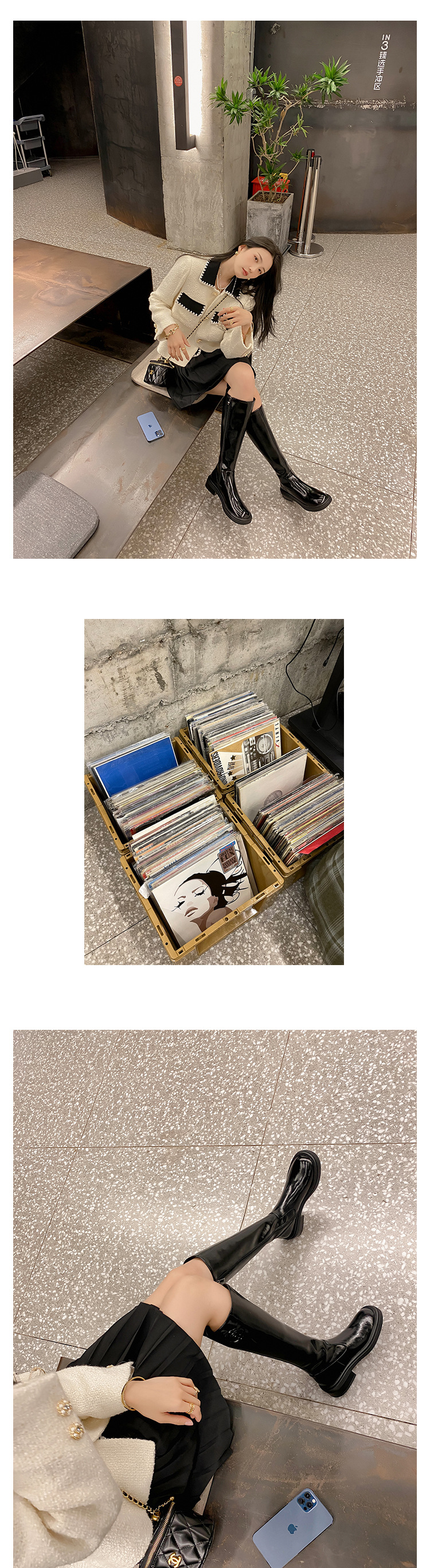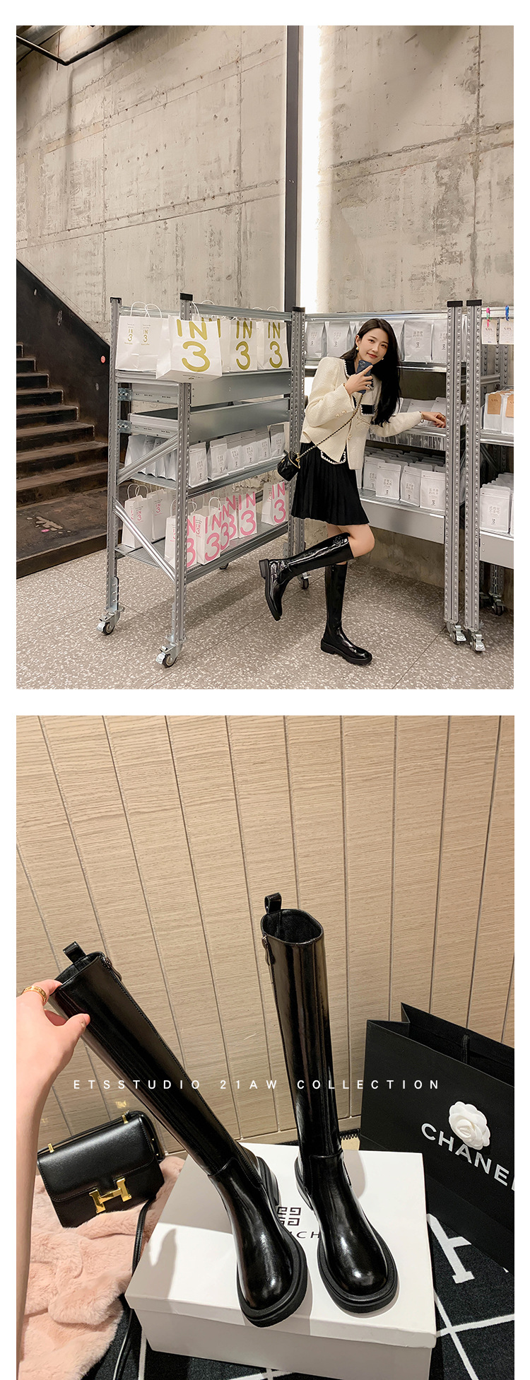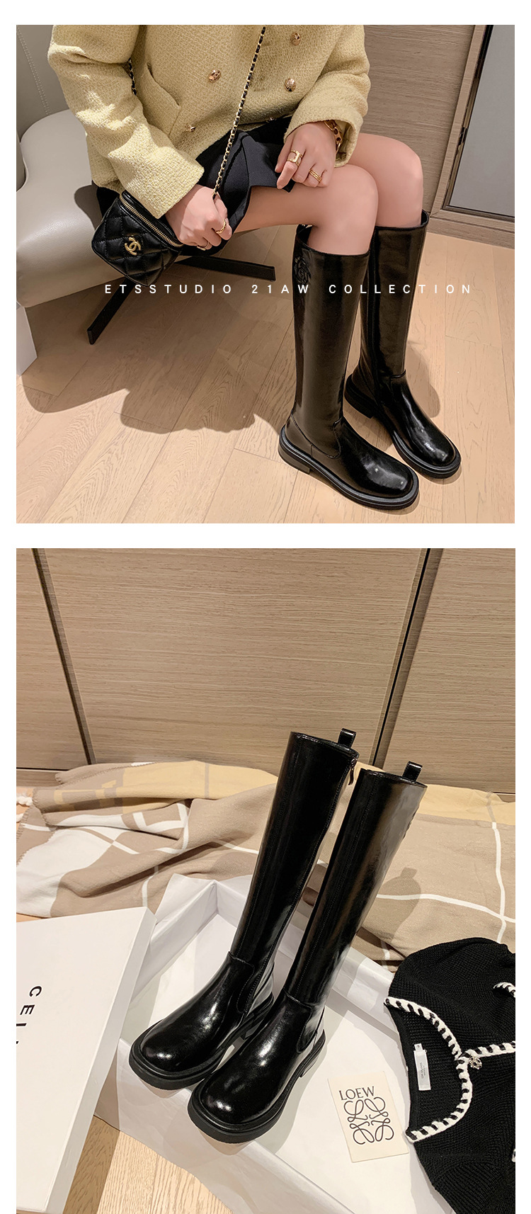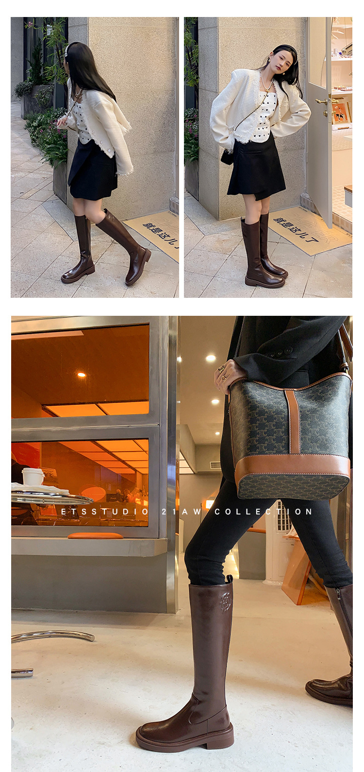 위안 서클 전체 소가죽 ~ 새로운 동백 가죽 높은 부츠 여성 기사 부츠 다크 브라운 부츠 작은 향기로운 부츠스토어 가기