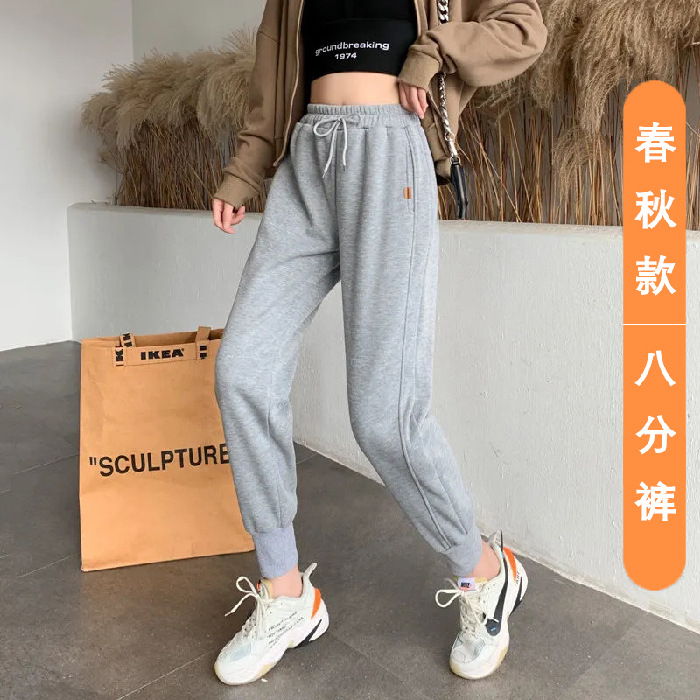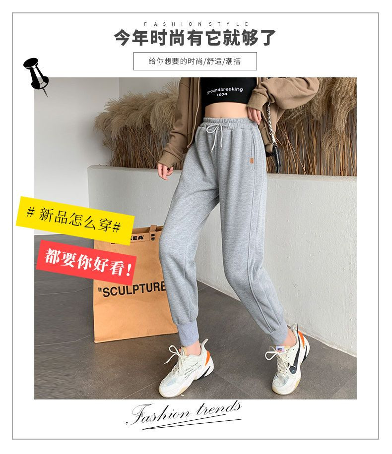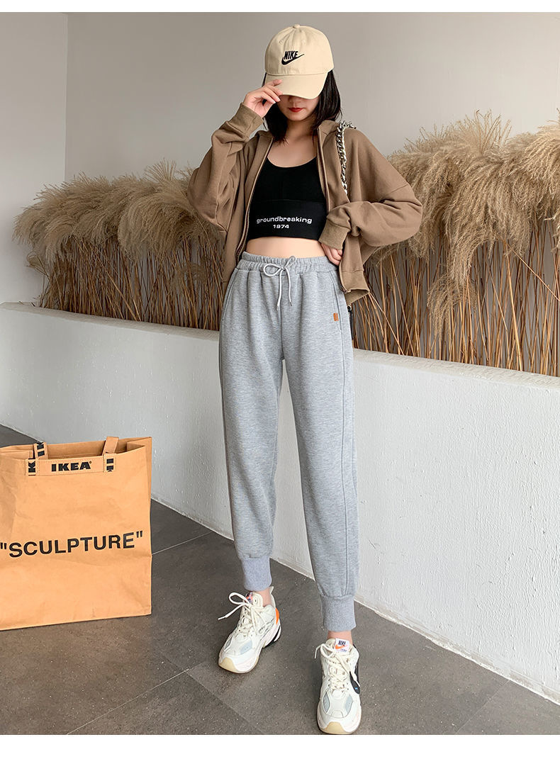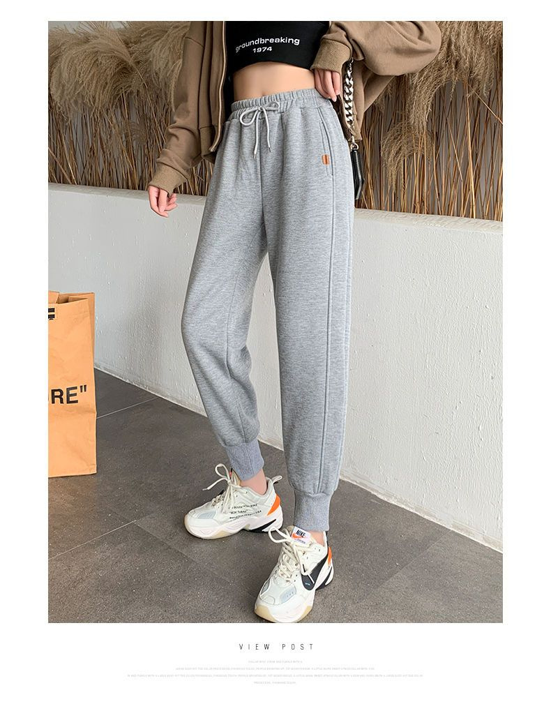 8 점 또는 9 점 스포츠 바지 여성의 느슨한 슬리밍 가을 및 겨울 기모 작은 발목 묶인 바지 캐주얼 스웨트 팬츠스토어 가기