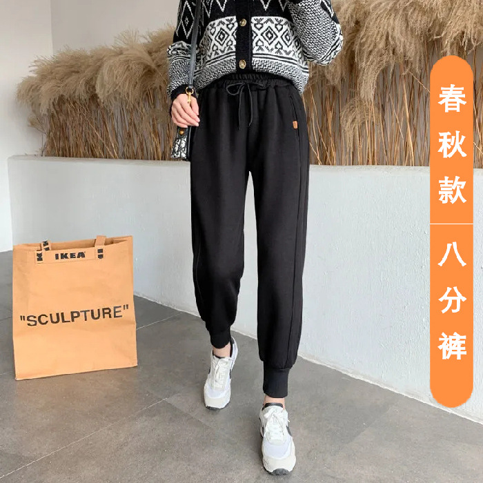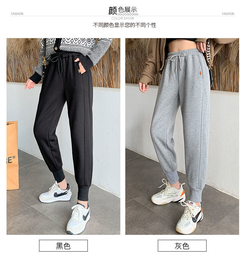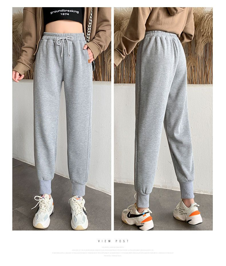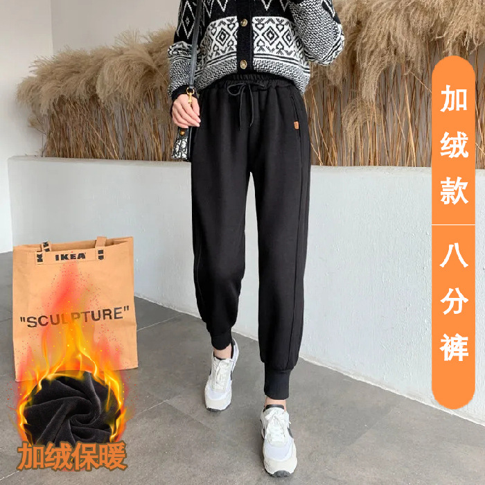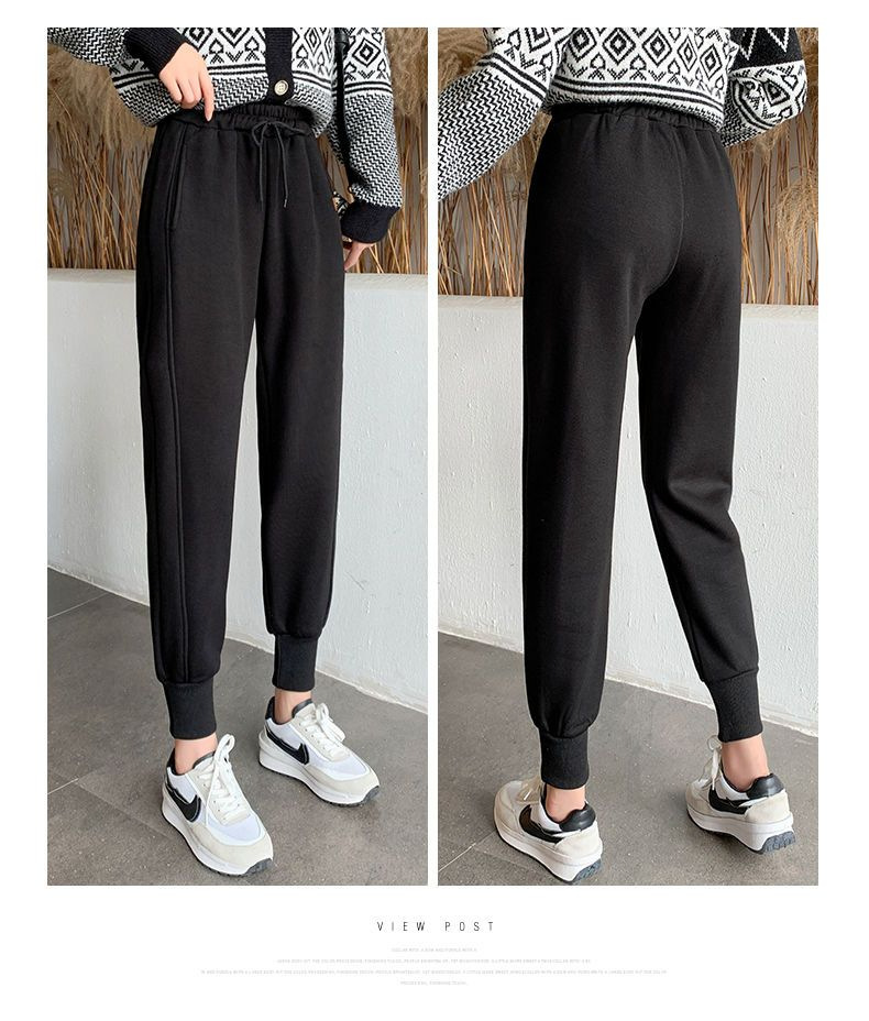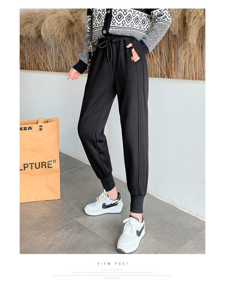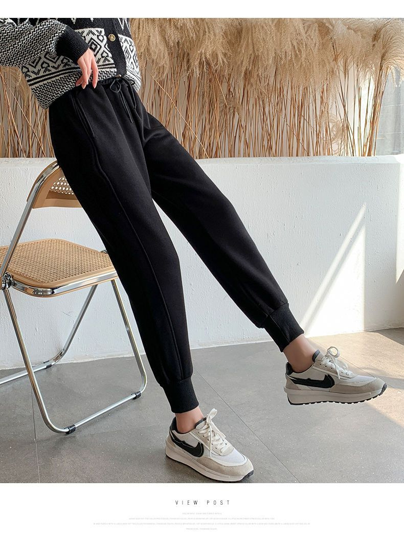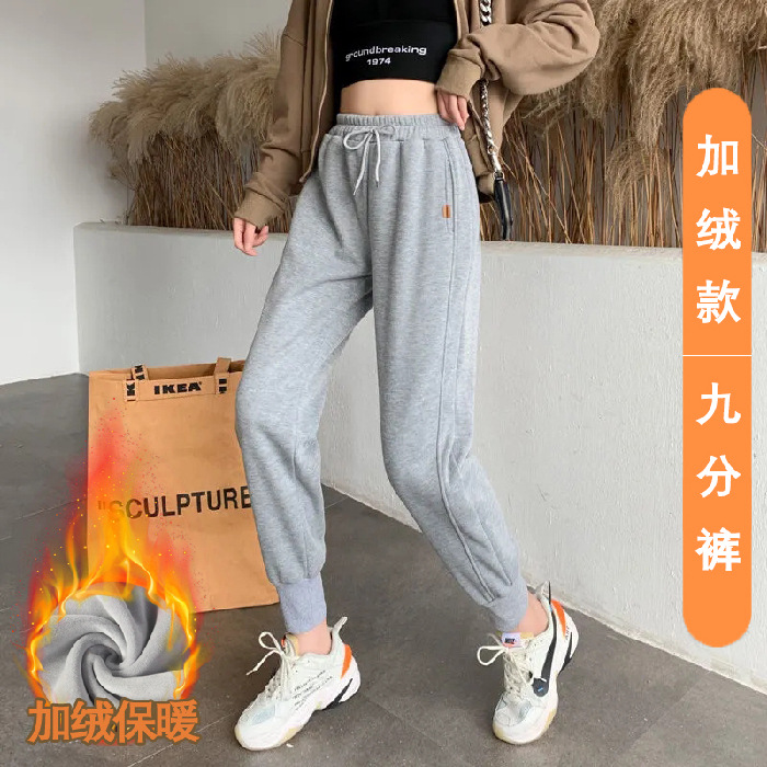 8 점 또는 9 점 스포츠 바지 여성의 느슨한 슬리밍 가을 및 겨울 기모 작은 발목 묶인 바지 캐주얼 스웨트 팬츠