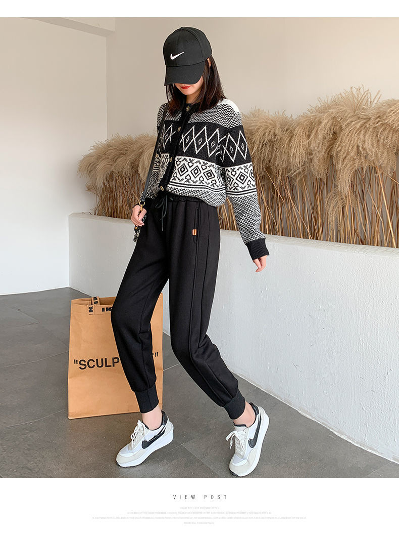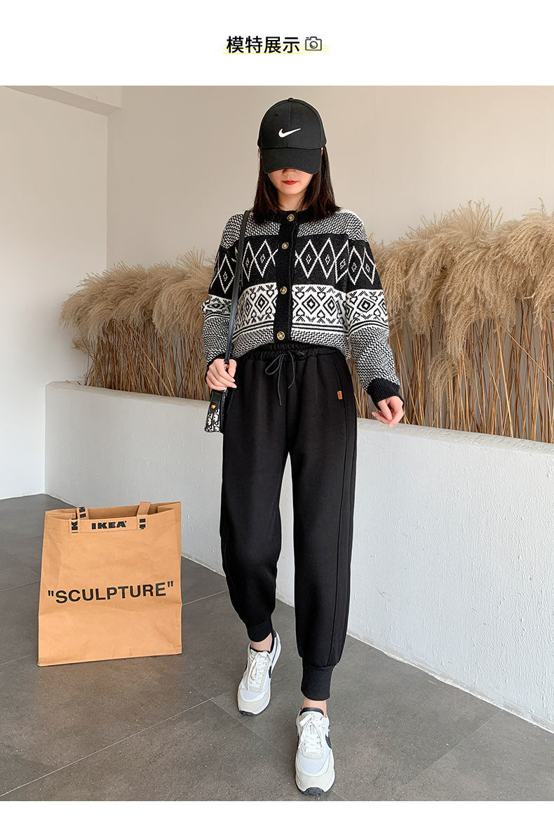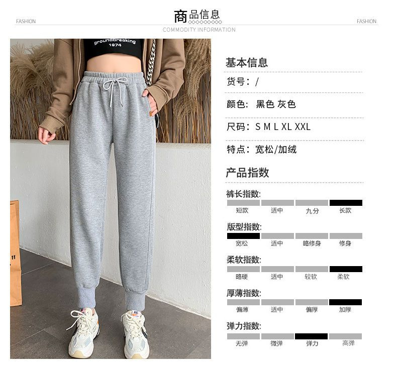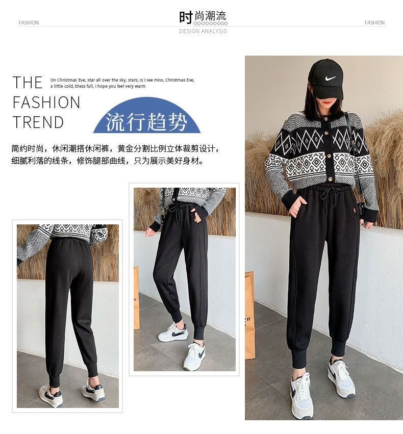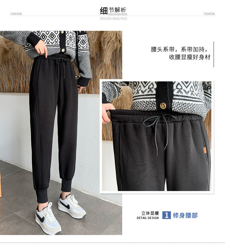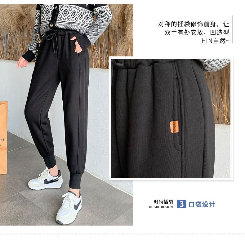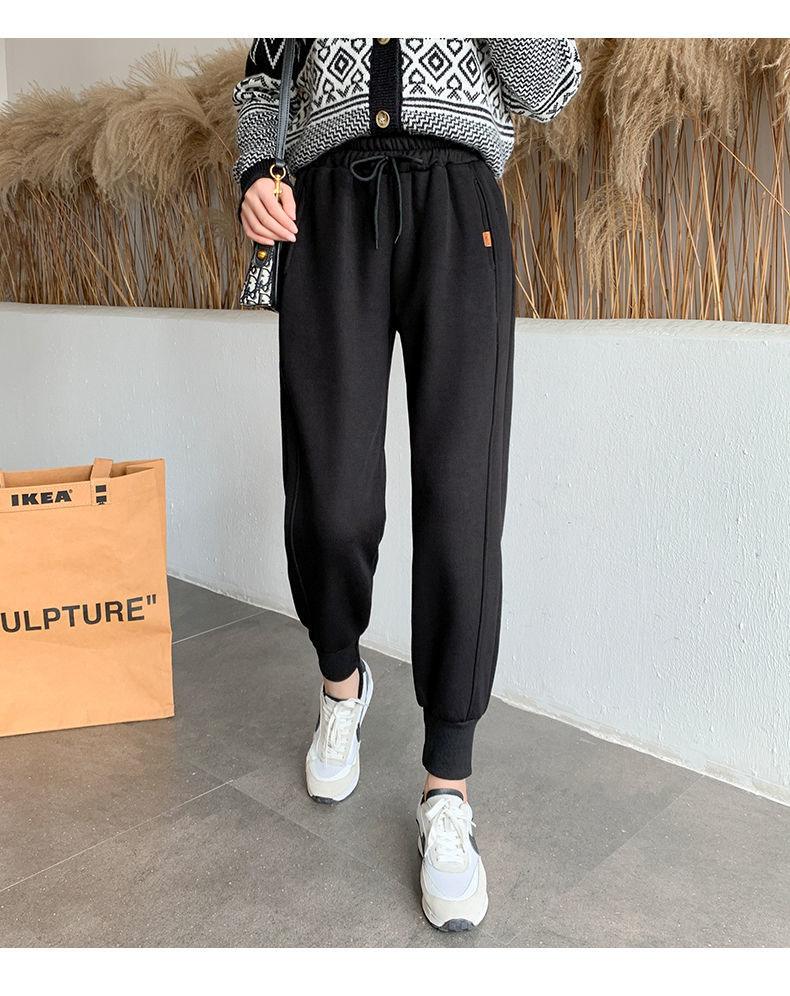 8 점 또는 9 점 스포츠 바지 여성의 느슨한 슬리밍 가을 및 겨울 기모 작은 발목 묶인 바지 캐주얼 스웨트 팬츠