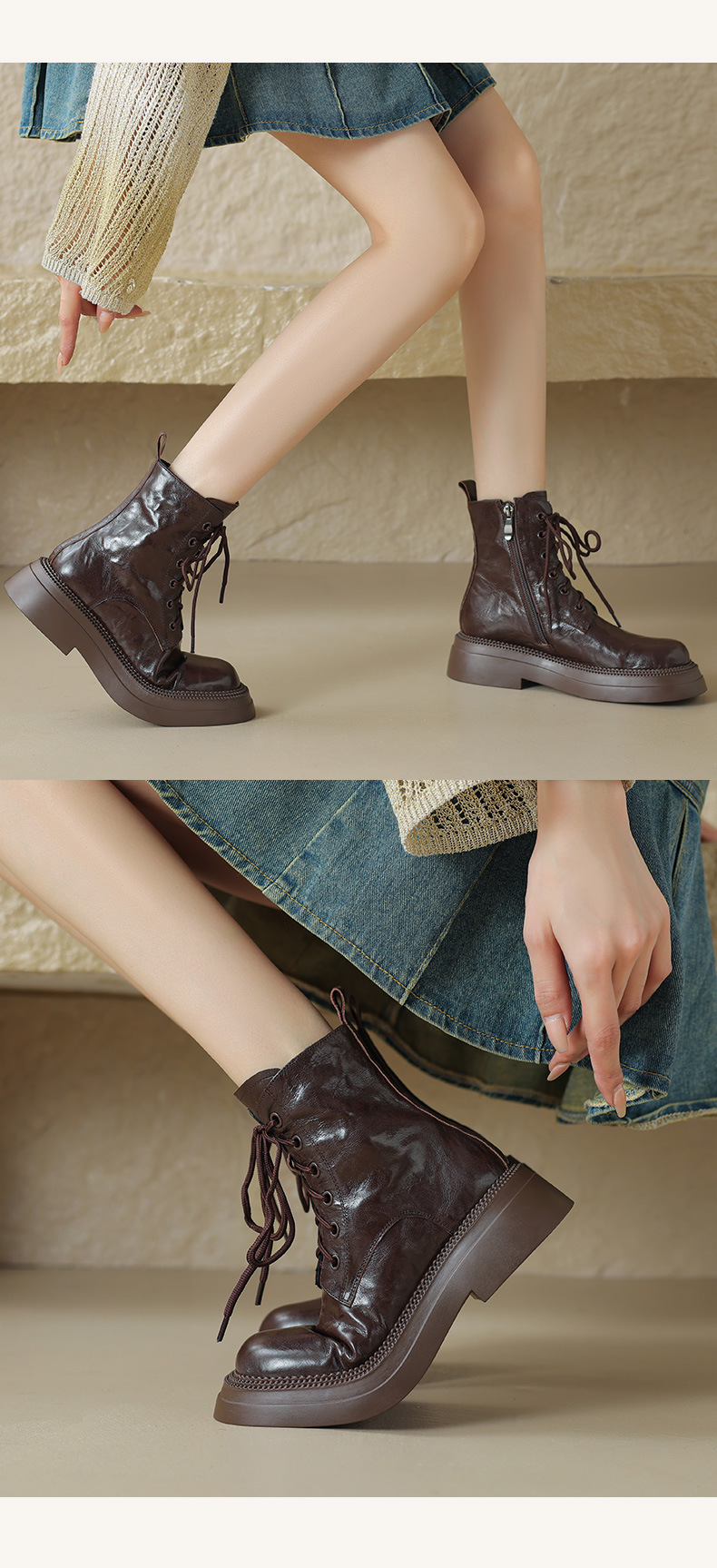손으로 긁힌 양피 둥근 발가락 마틴 부츠 여성용 2023 가을과 겨울 새로운 두꺼운 밑창 짧은 부츠 다큐멘터리 부츠 기모스토어 가기