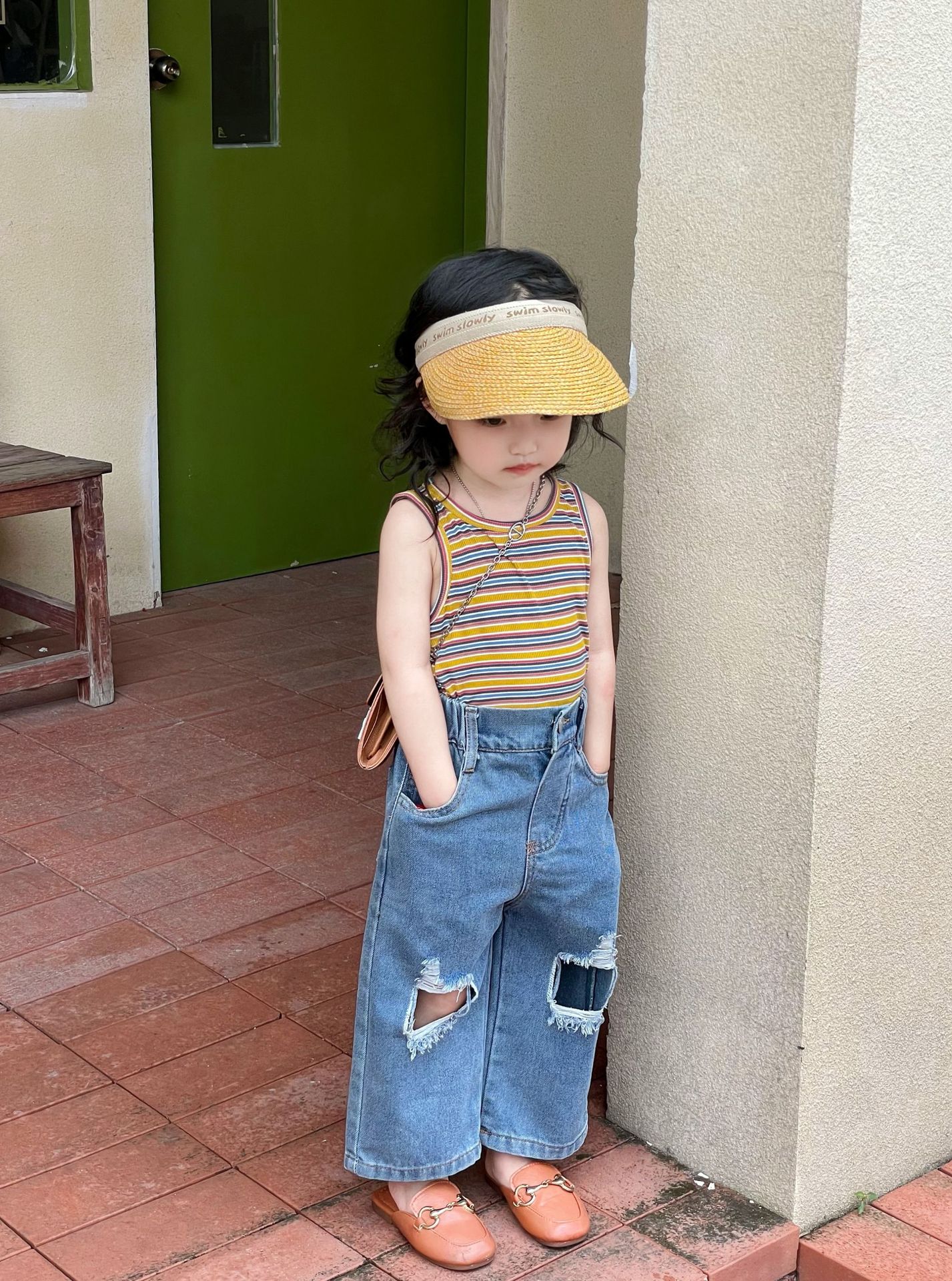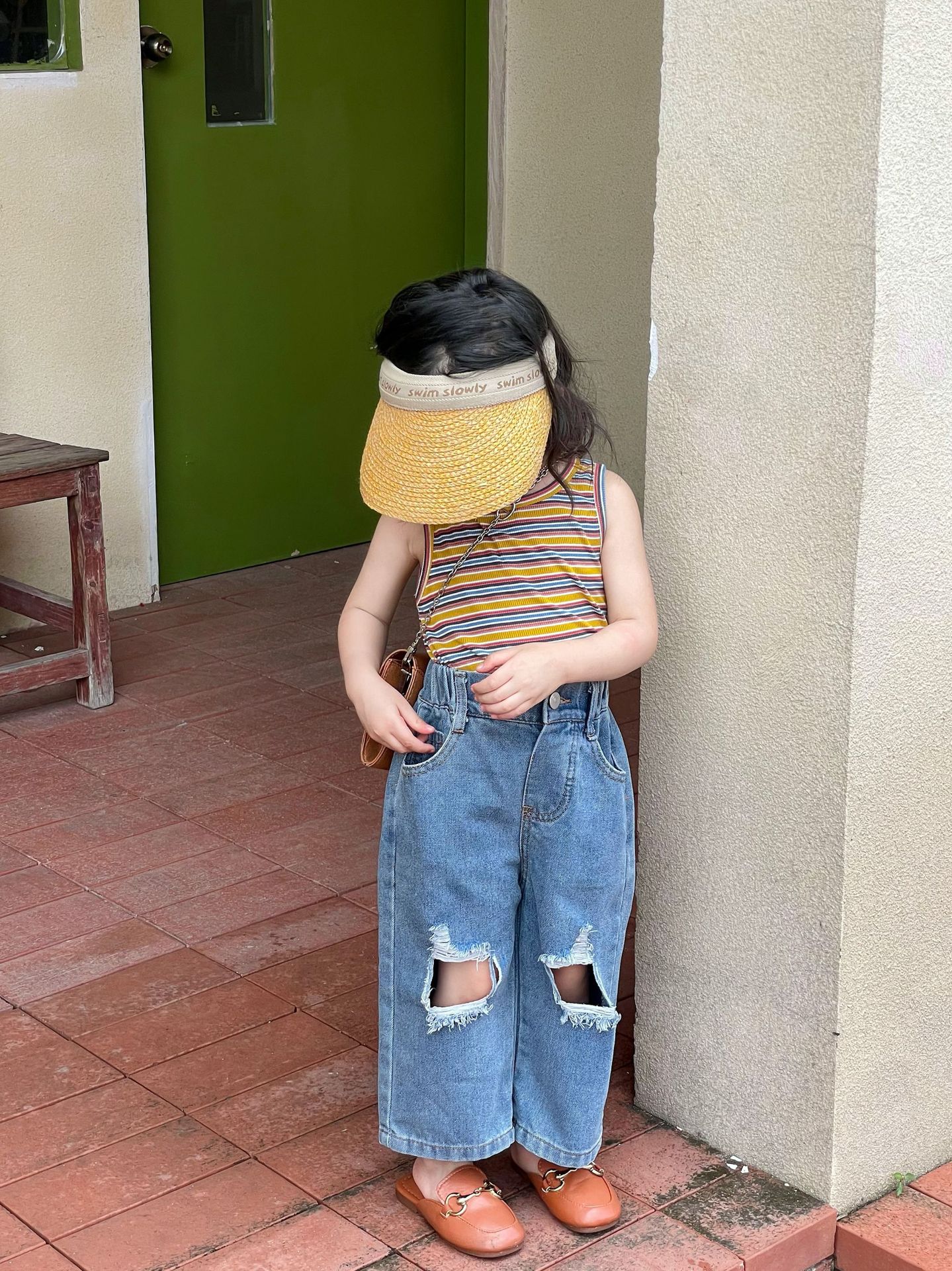 Jella 아동복 아동 찢어진 청바지 2025 가을 신작 한국식 워싱 패셔너블 와이드 팬츠 1스토어 가기