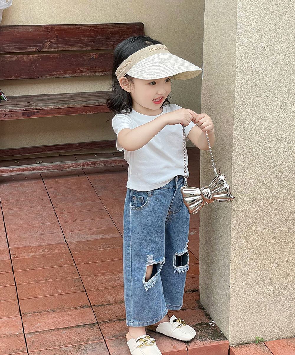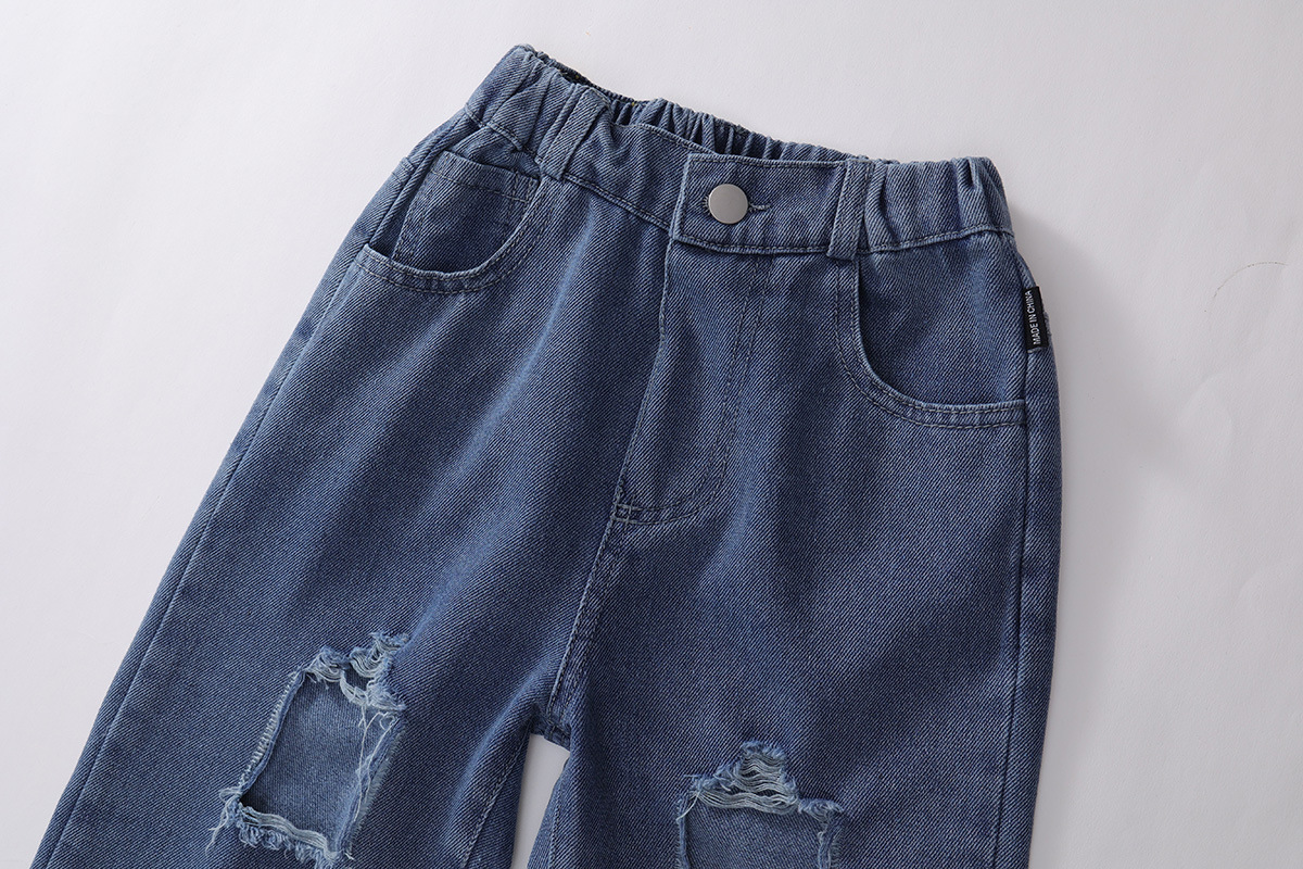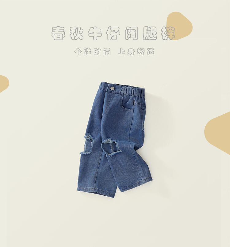 Jella 아동복 아동 찢어진 청바지 2025 가을 신작 한국식 워싱 패셔너블 와이드 팬츠 1
