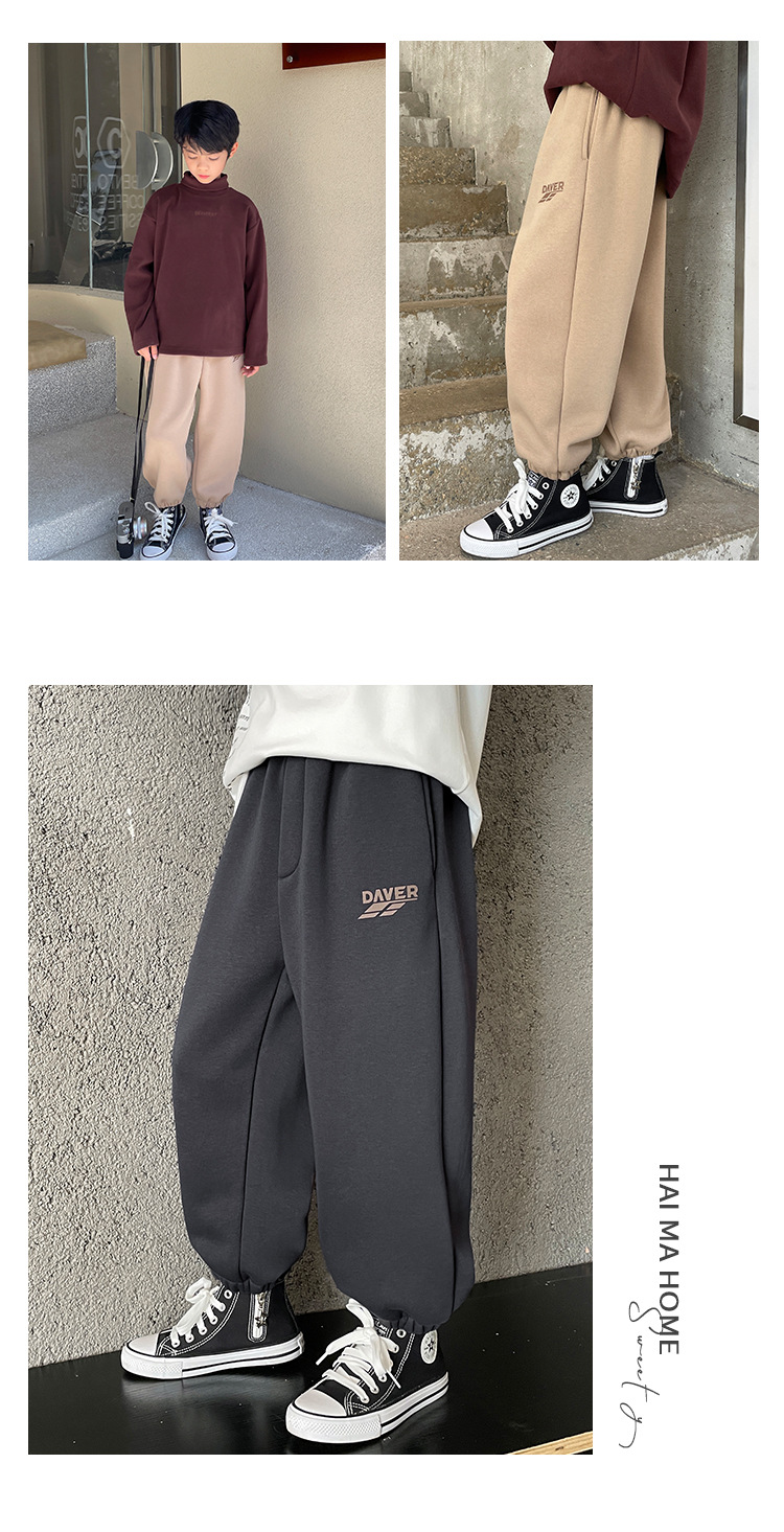 Haimajia 2024 소년의 새로운 겨울 의류 벨벳 두꺼운 캐주얼 바지 스포츠 바지 따뜻한 겨울 스웨트 팬츠 바지 유행스토어 가기