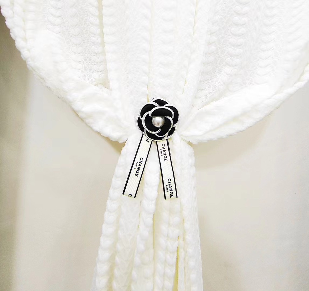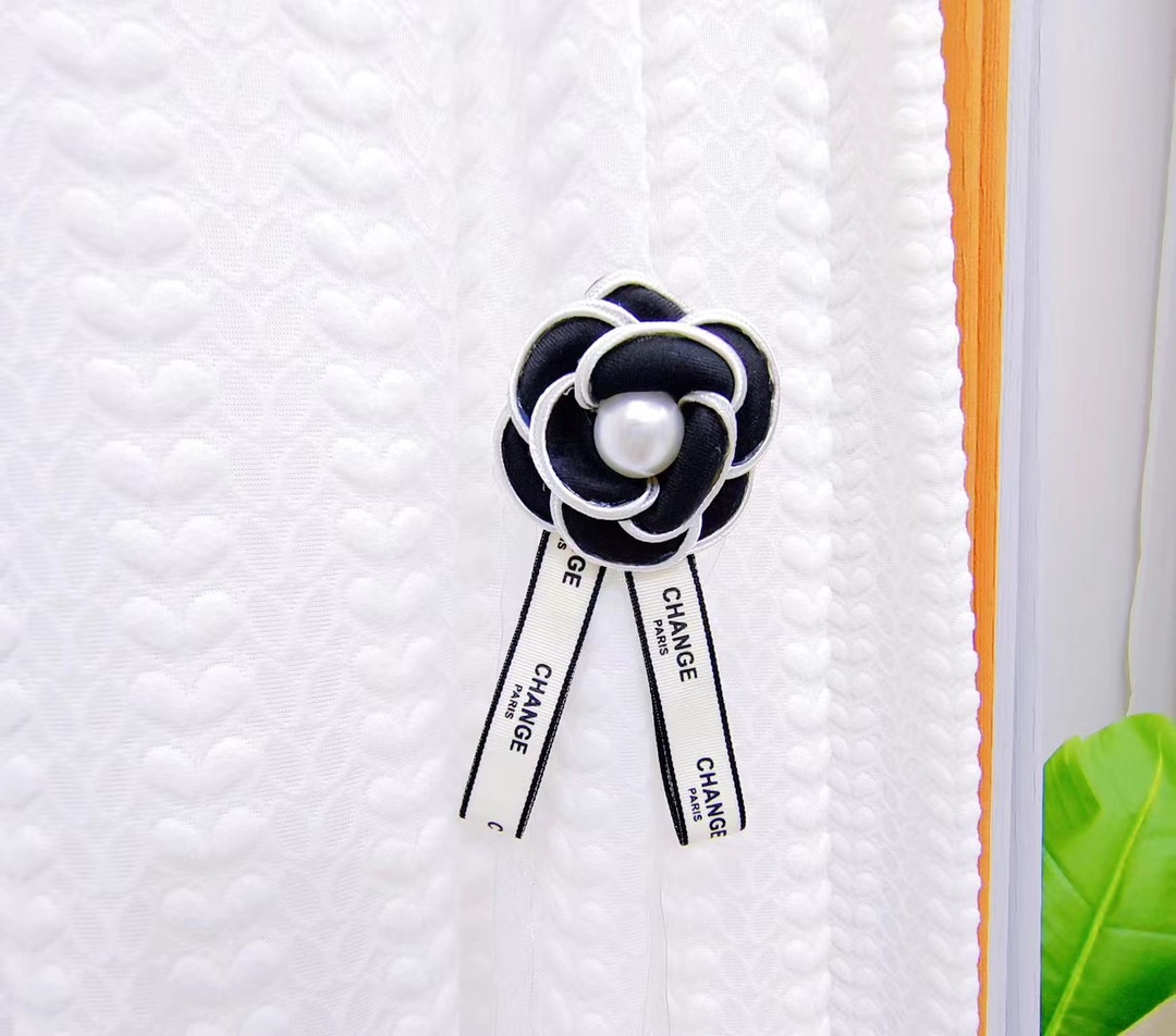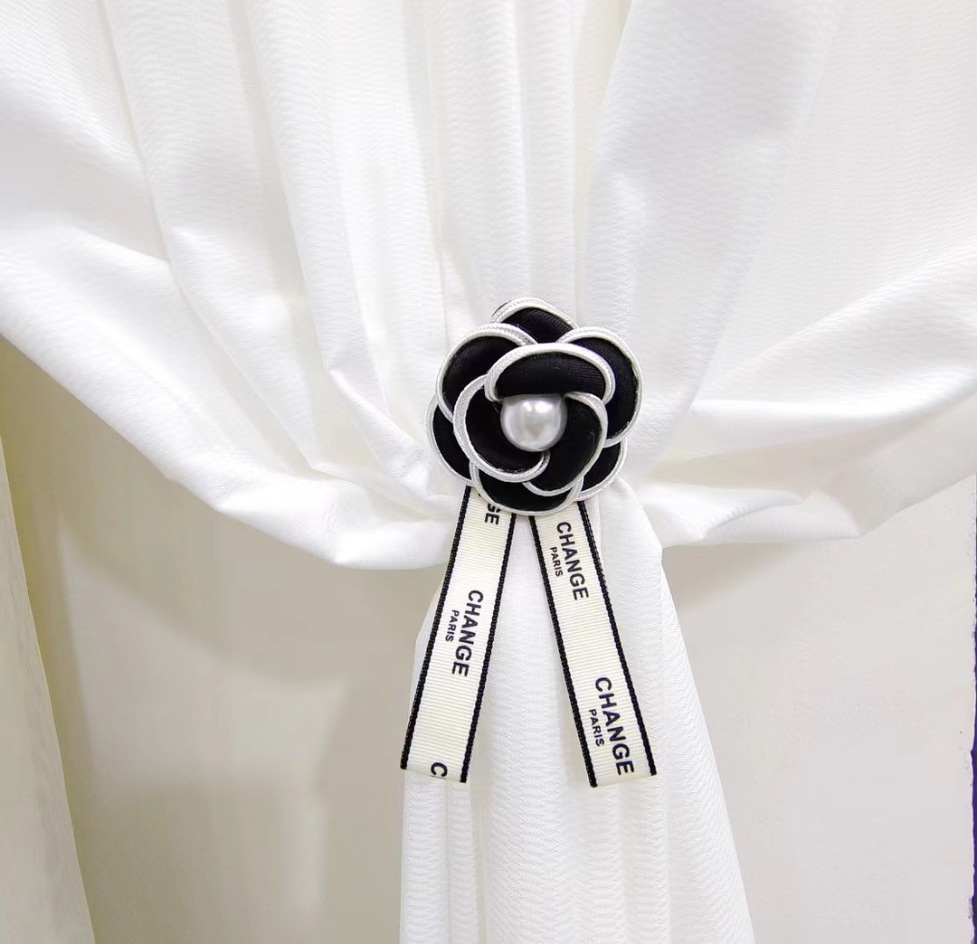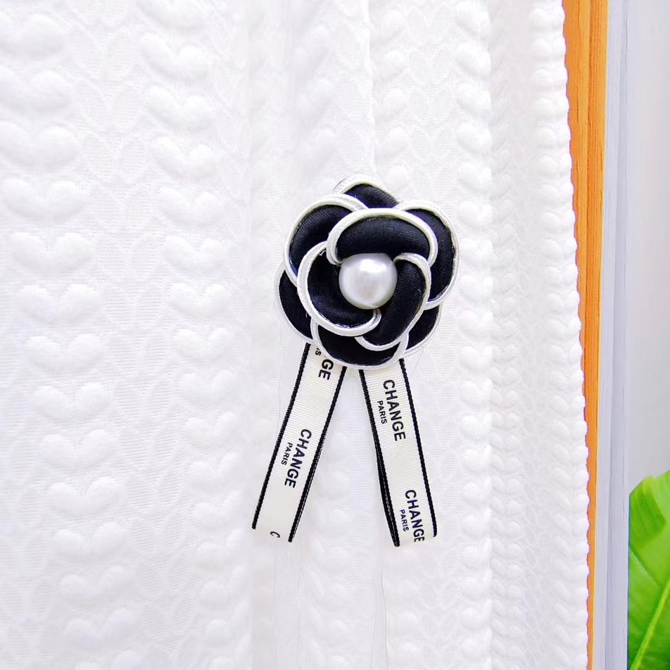 클래식 흑백 동백 핀 보석 진주 활 커튼 장식 장식 샤넬 스타일 핀 스트랩
