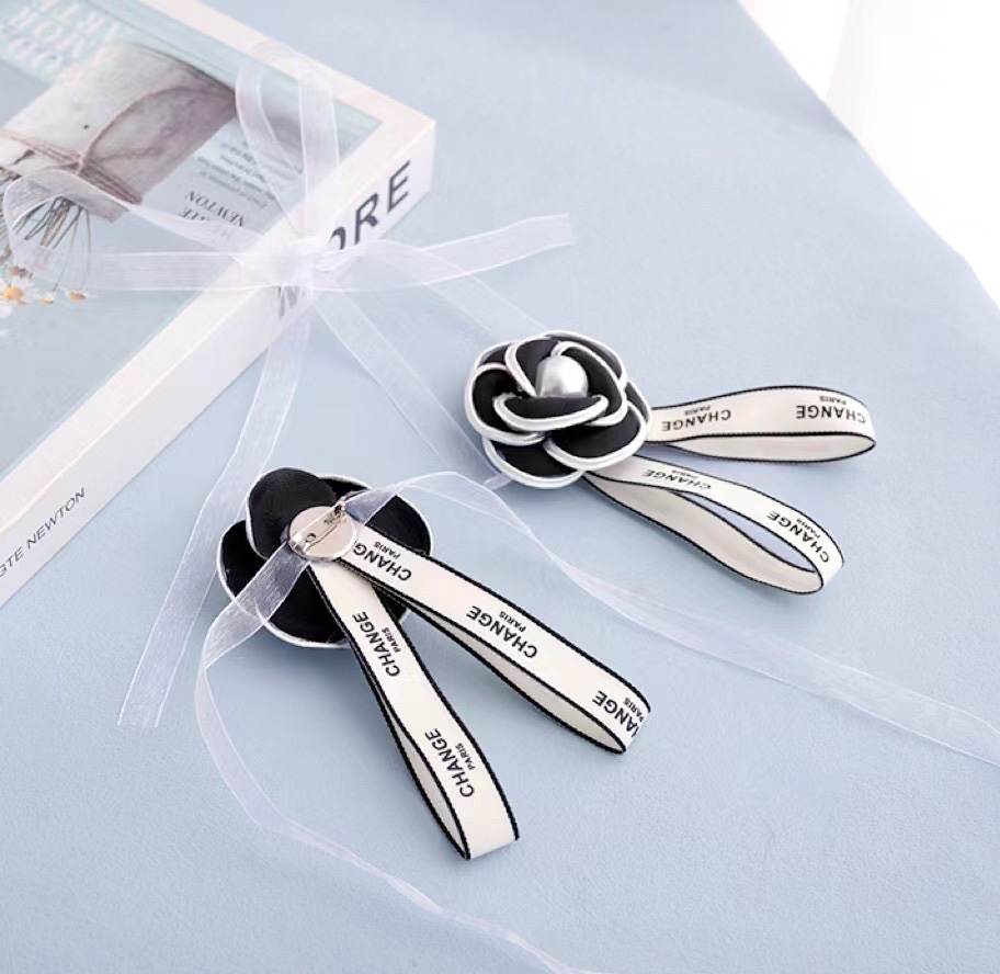 클래식 흑백 동백 핀 보석 진주 활 커튼 장식 장식 샤넬 스타일 핀 스트랩스토어 가기