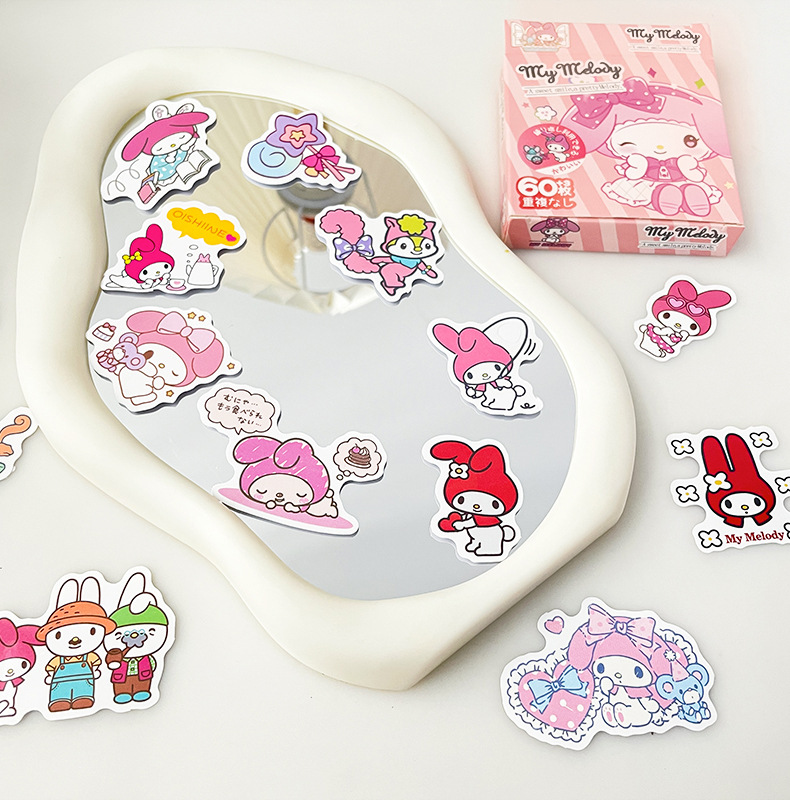 Liou 스티커 선물 상자 박스형 어린이 귀여운 만화 방수 60 조각 Kuromi Guka 핸드북 스티커 도매