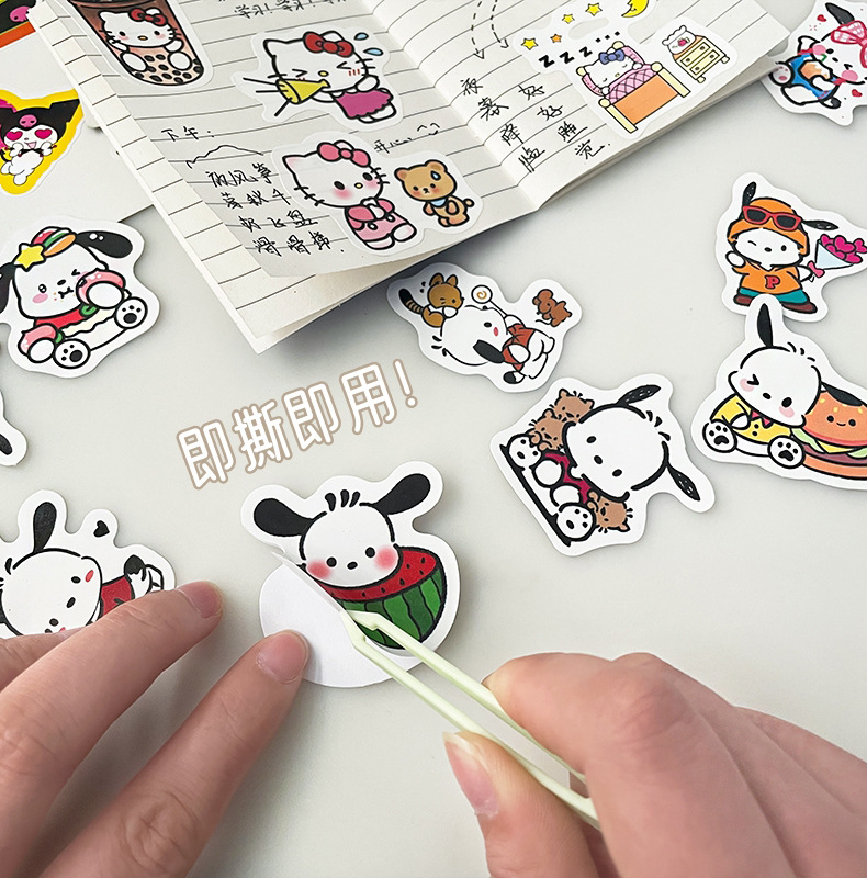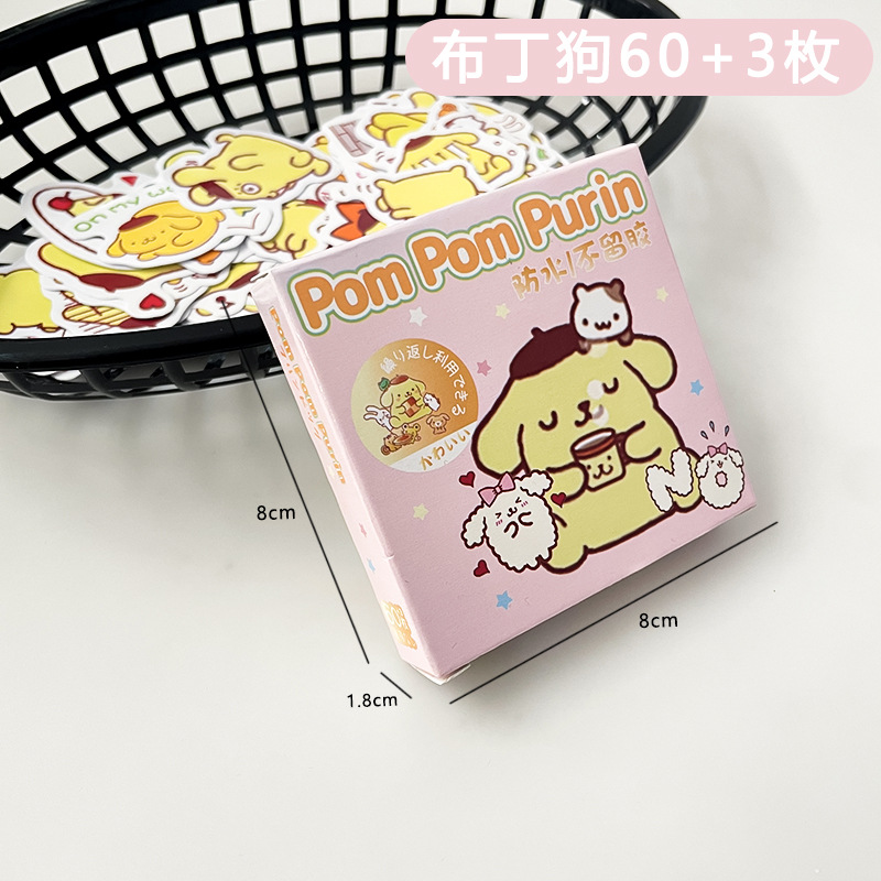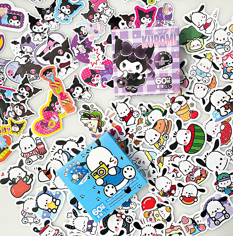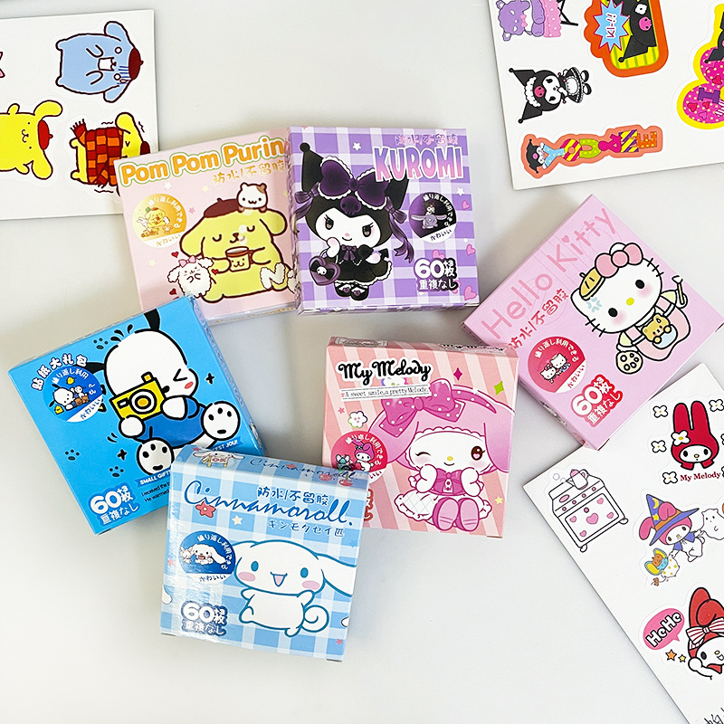 Liou 스티커 선물 상자 박스형 어린이 귀여운 만화 방수 60 조각 Kuromi Guka 핸드북 스티커 도매스토어 가기