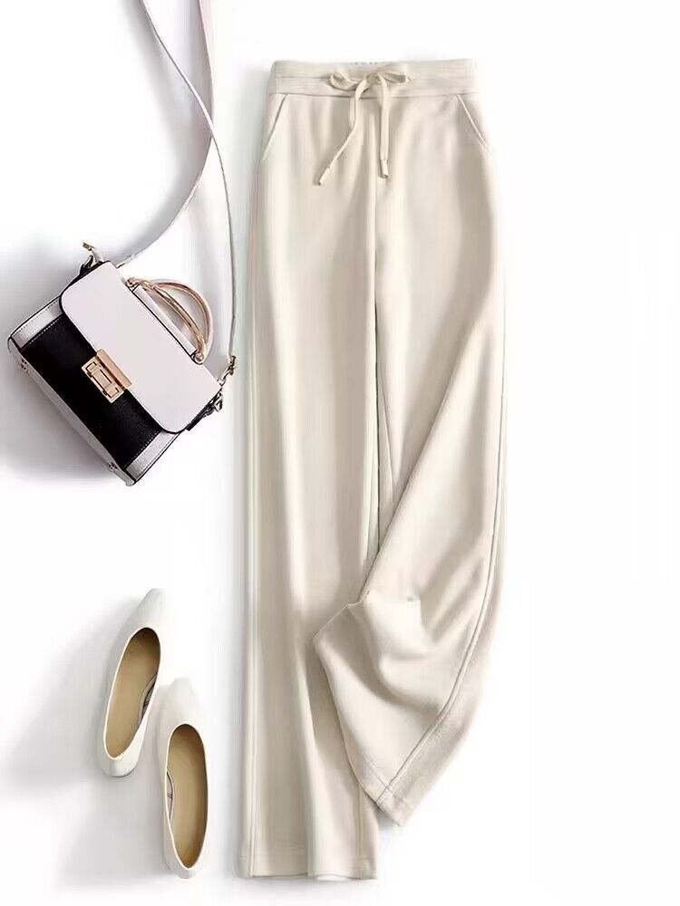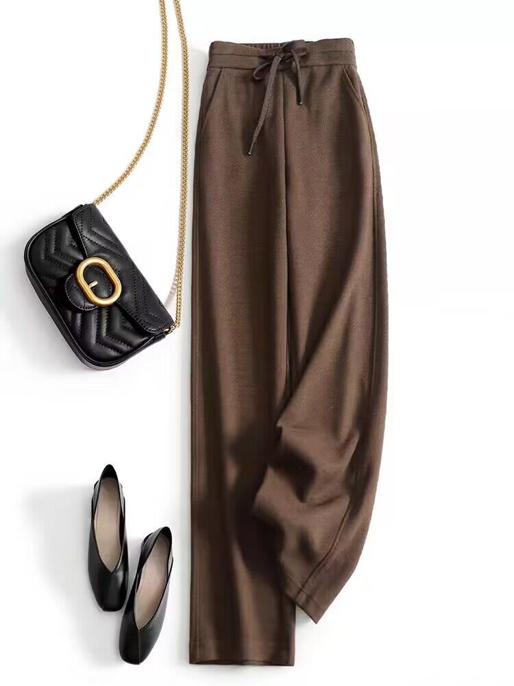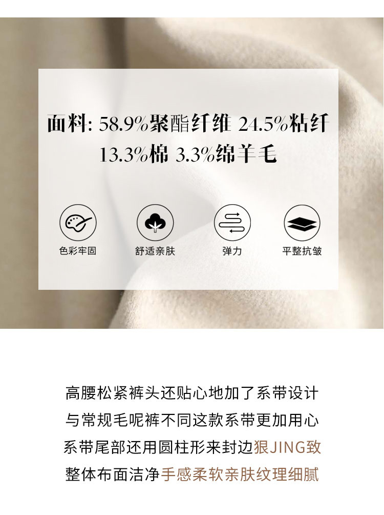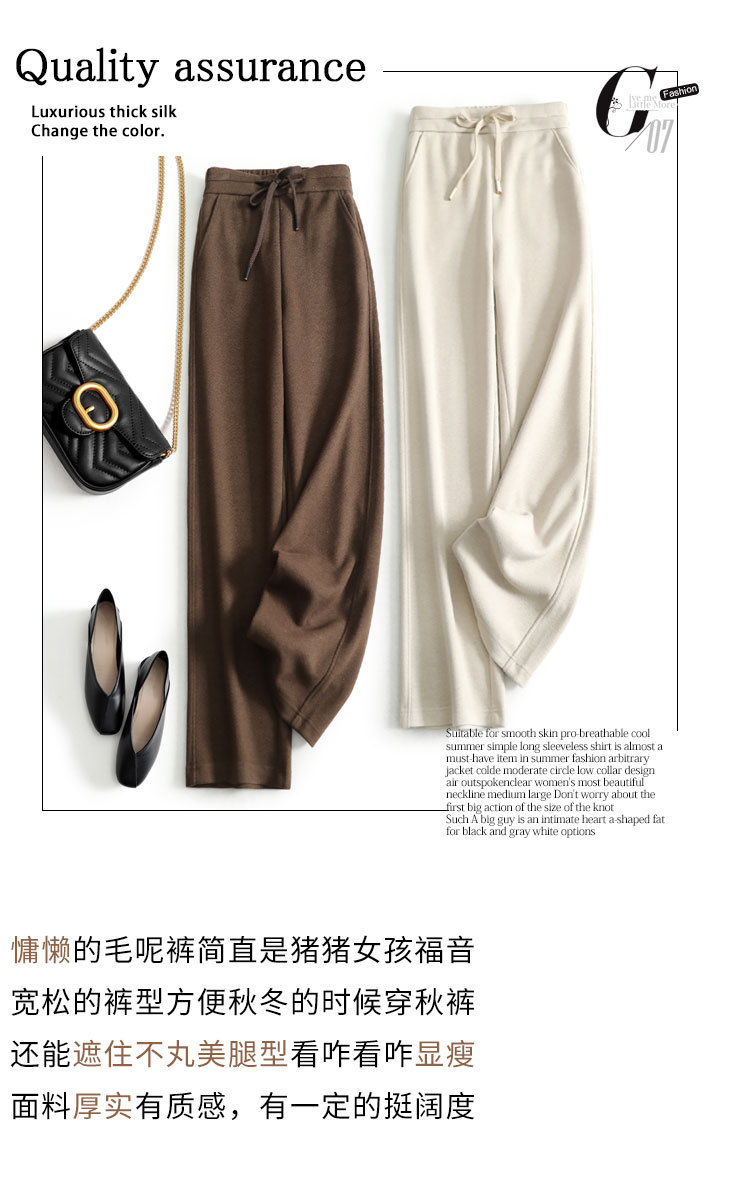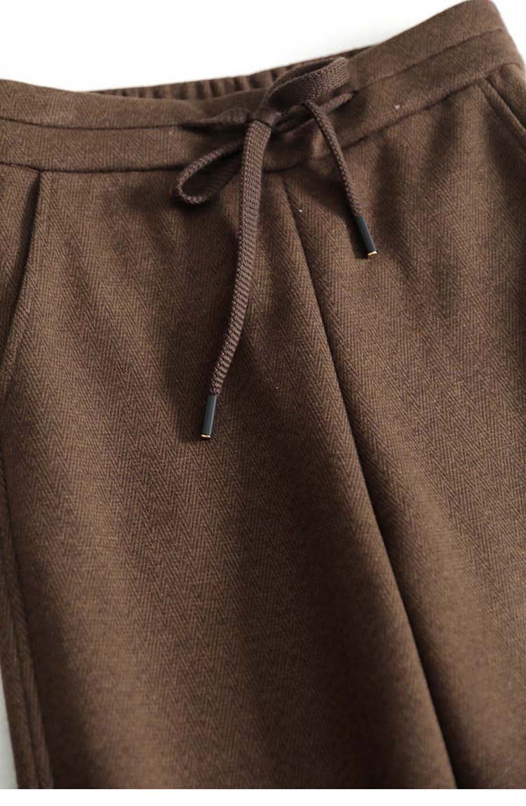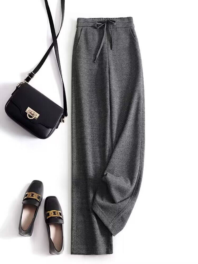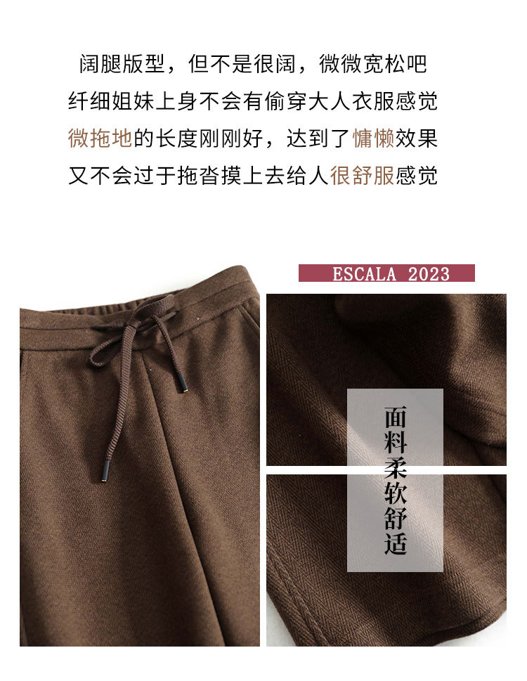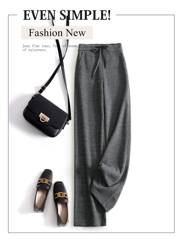 高端好货 亲肤人字纹窄版阔腿裤女高腰垂感不皱秋冬毛呢直筒长裤