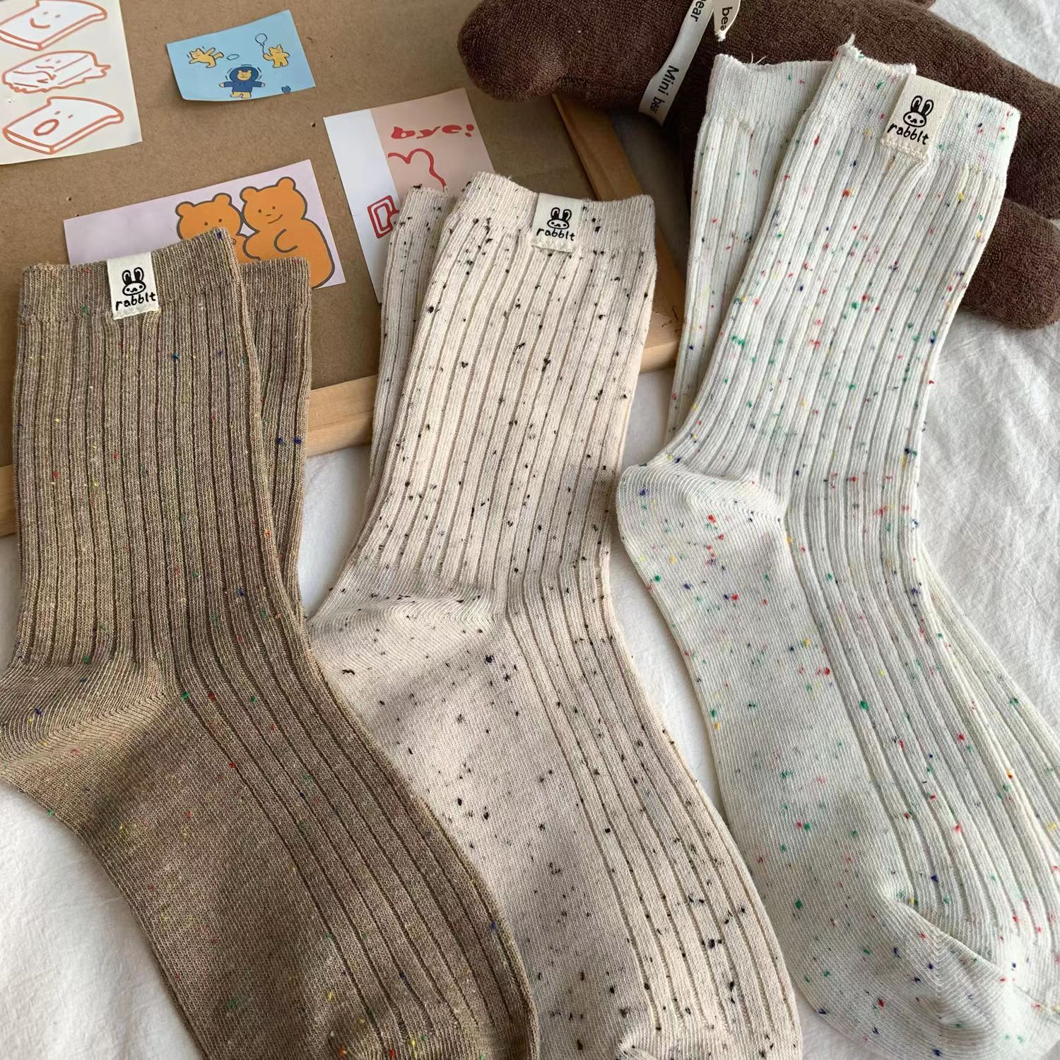 엄선된 가을 겨울 브라운 색상 양말 여성용 틱톡 인기 두꺼운 포인트 원사 대학 스타일 패션 중간 길이 양말 여성용스토어 가기