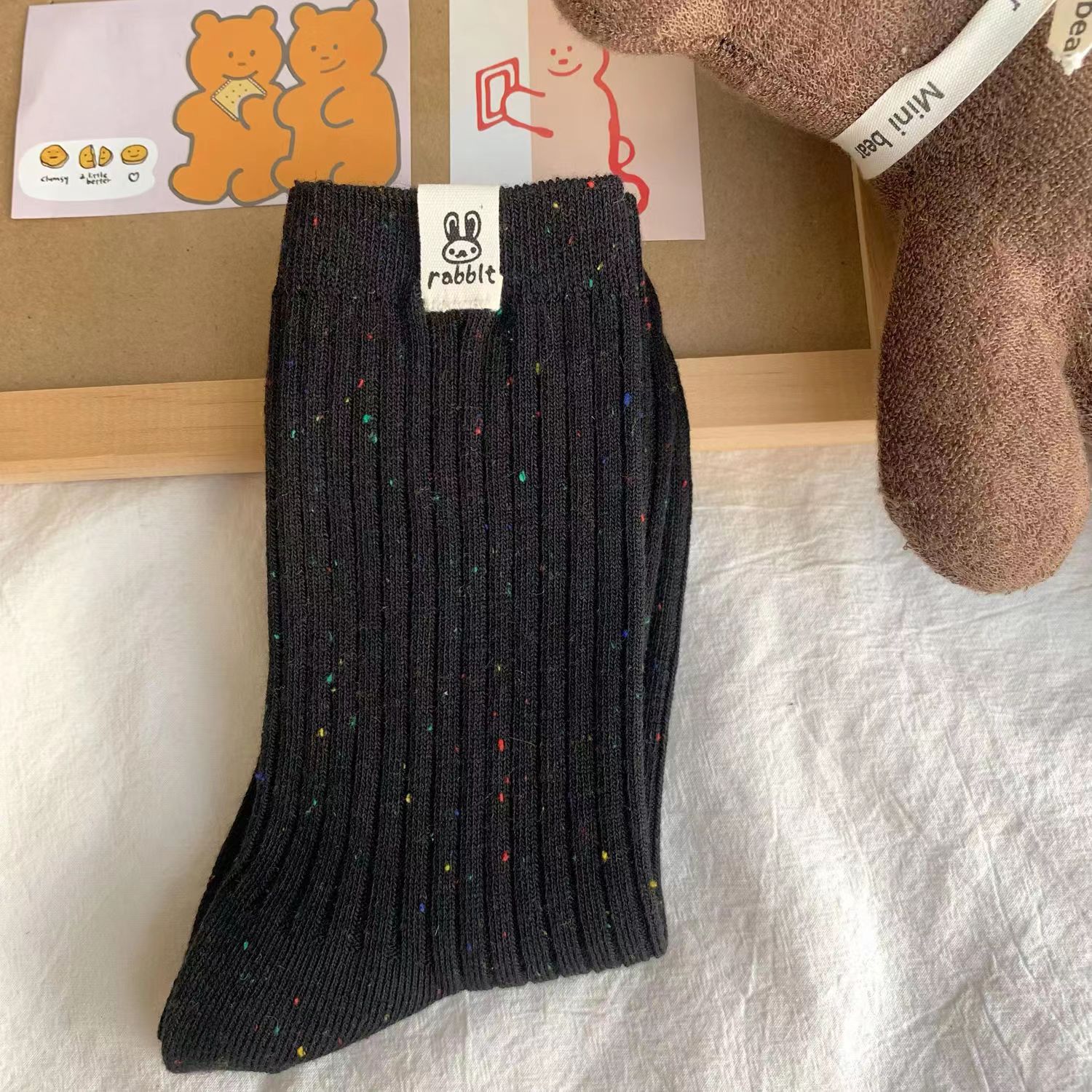 엄선된 가을 겨울 브라운 색상 양말 여성용 틱톡 인기 두꺼운 포인트 원사 대학 스타일 패션 중간 길이 양말 여성용