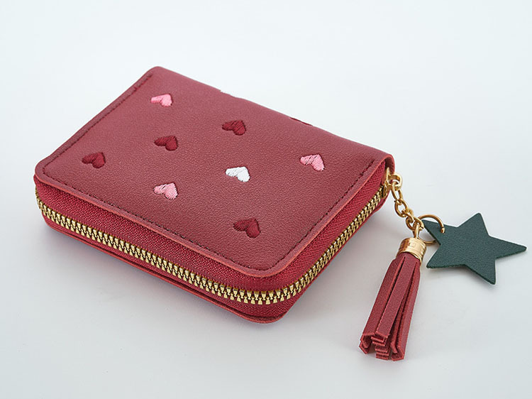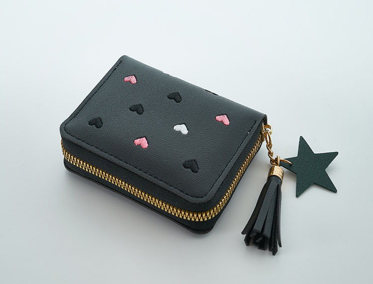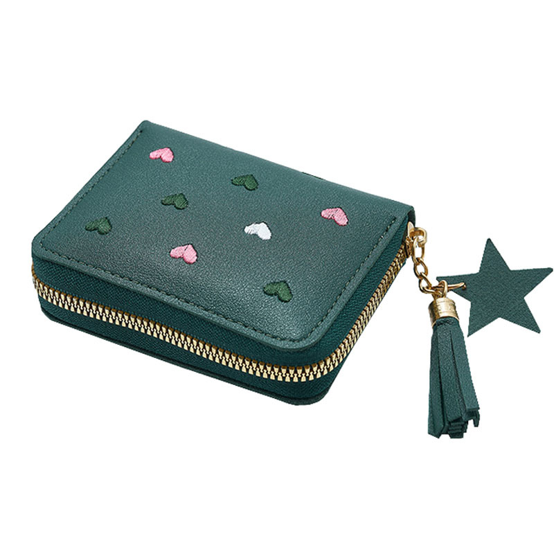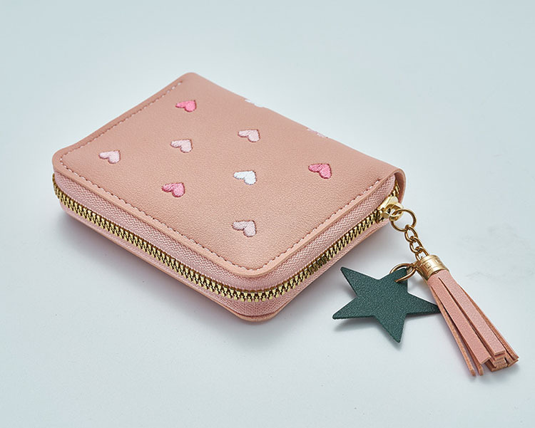 새로운 짧은 여성용 동전 지갑 귀여운 하트 한국어 버전 사랑 자수 어린이 보관 소녀 미니 카드 가방