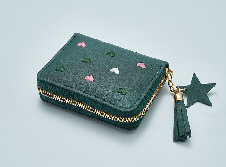 새로운 짧은 여성용 동전 지갑 귀여운 하트 한국어 버전 사랑 자수 어린이 보관 소녀 미니 카드 가방스토어 가기