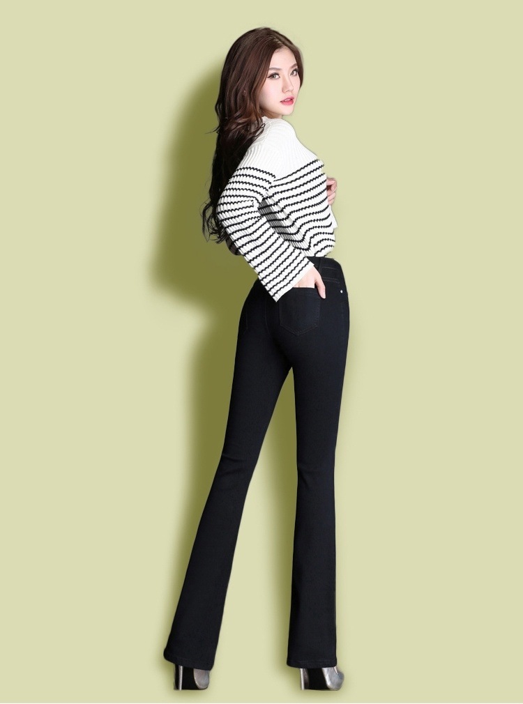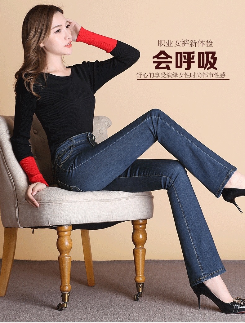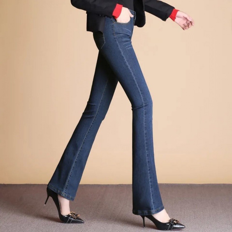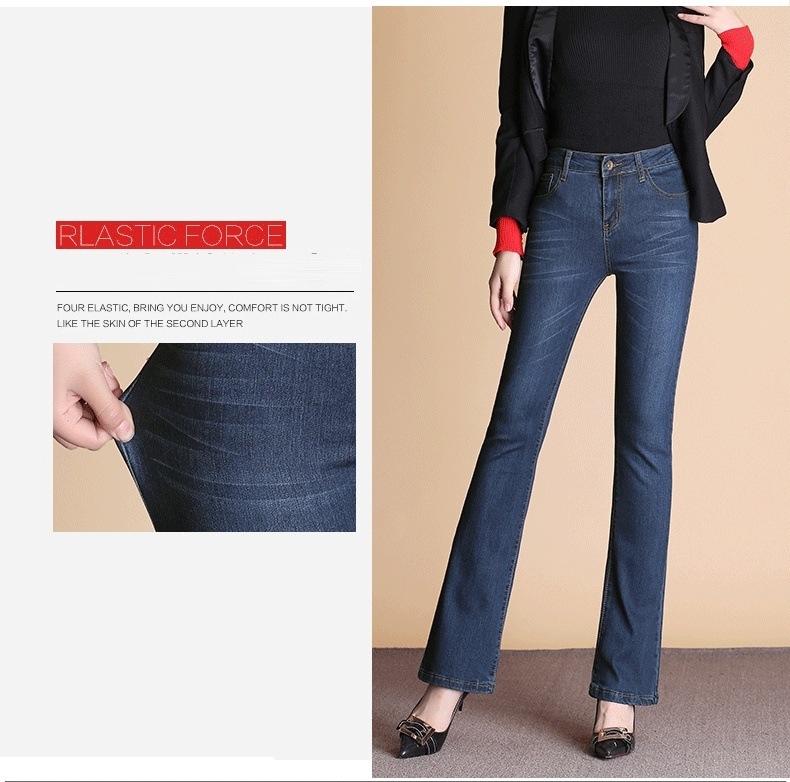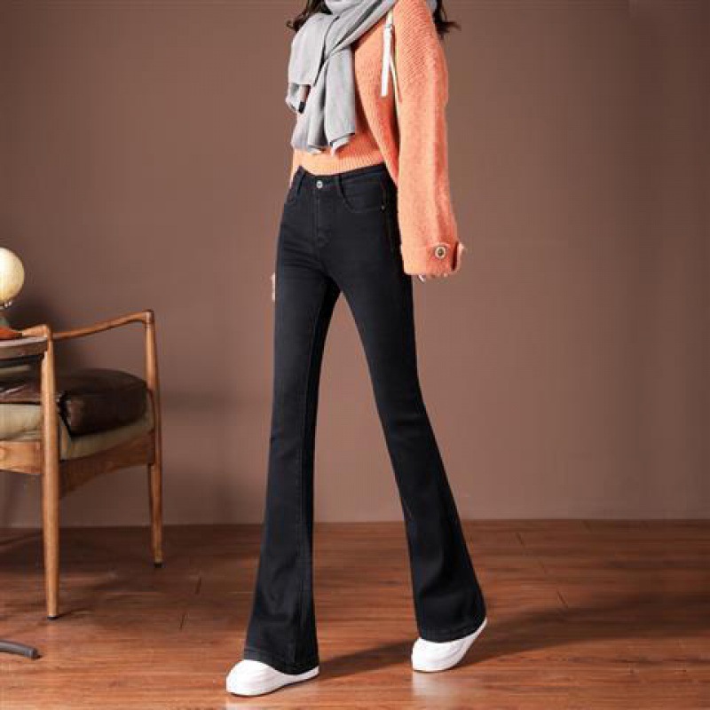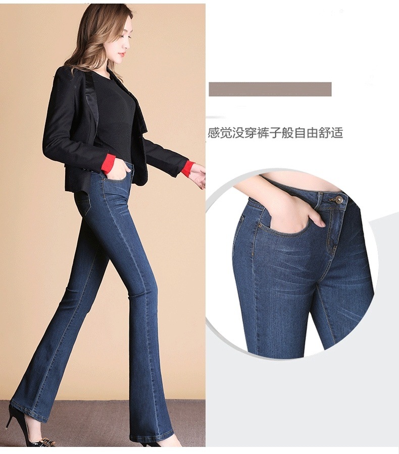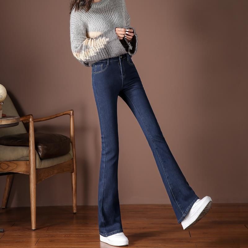 하이 웨이스트 2023 가을과 겨울 새로운 마이크로 플레어 청바지 여성 바지 스트레치 플러스 사이즈 슬림룩 와이드 레그 팬츠 중년 여성 바지스토어 가기