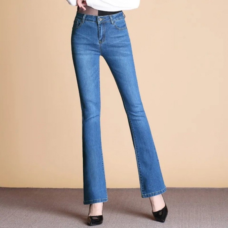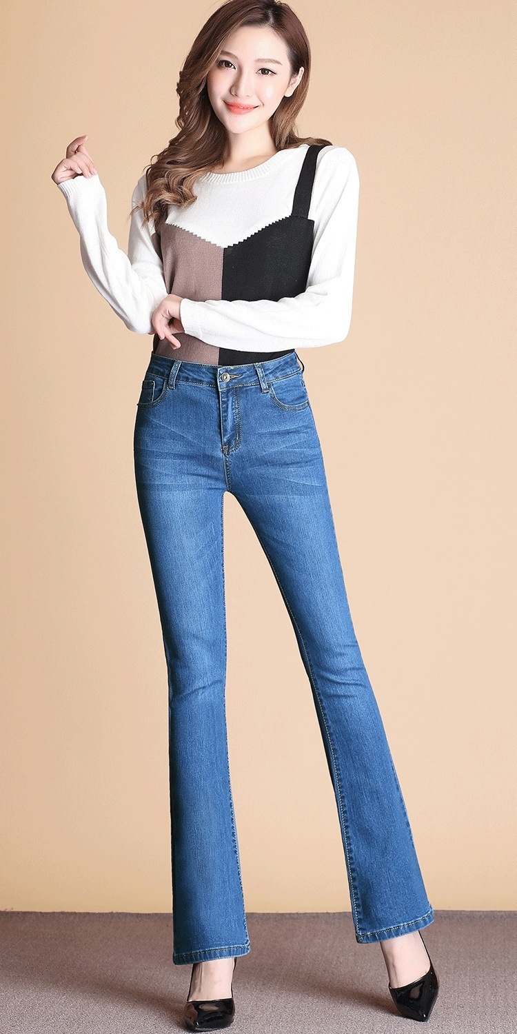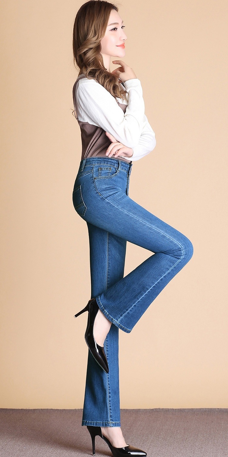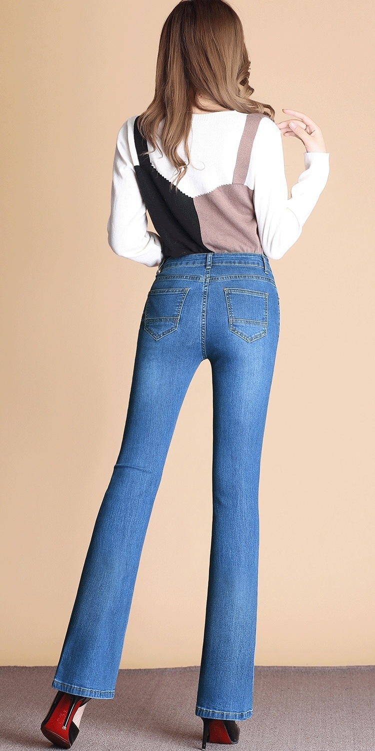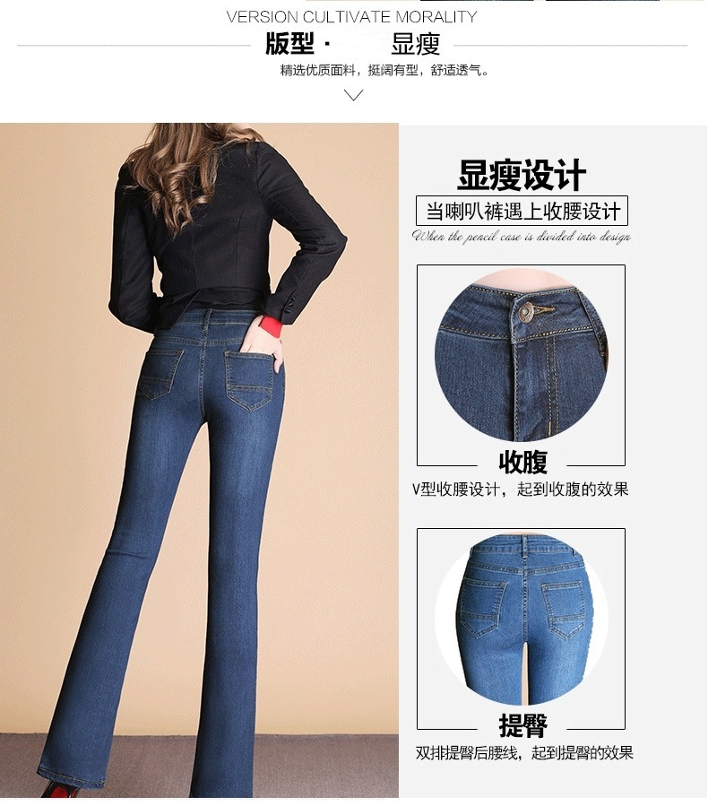 하이 웨이스트 2023 가을과 겨울 새로운 마이크로 플레어 청바지 여성 바지 스트레치 플러스 사이즈 슬림룩 와이드 레그 팬츠 중년 여성 바지스토어 가기