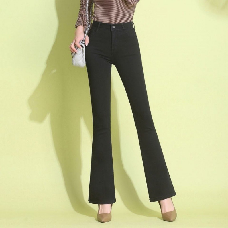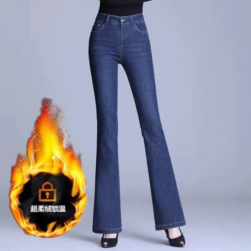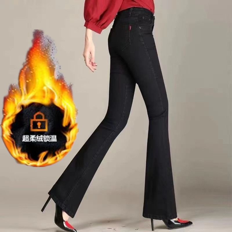 하이 웨이스트 2023 가을과 겨울 새로운 마이크로 플레어 청바지 여성 바지 스트레치 플러스 사이즈 슬림룩 와이드 레그 팬츠 중년 여성 바지