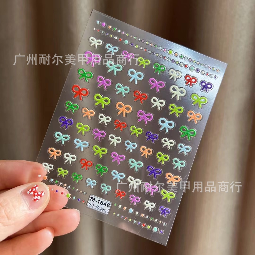 새로운 공예 5D 양각 네일 아트 접착 스티커 진주 플로팅 원사 복고풍 색상 간단한 활 멀티 컬러 다양한 옵션스토어 가기