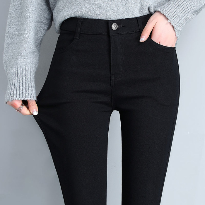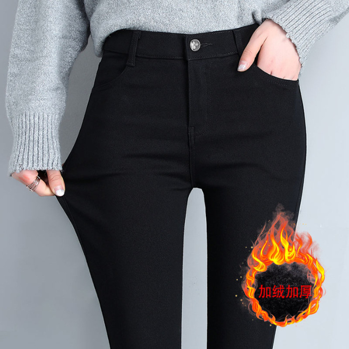 기모 레깅스 여자의 가을과 겨울 겉옷 겨울 하이 웨이스트 꽉 연필 블랙 바지 블랙 레깅스