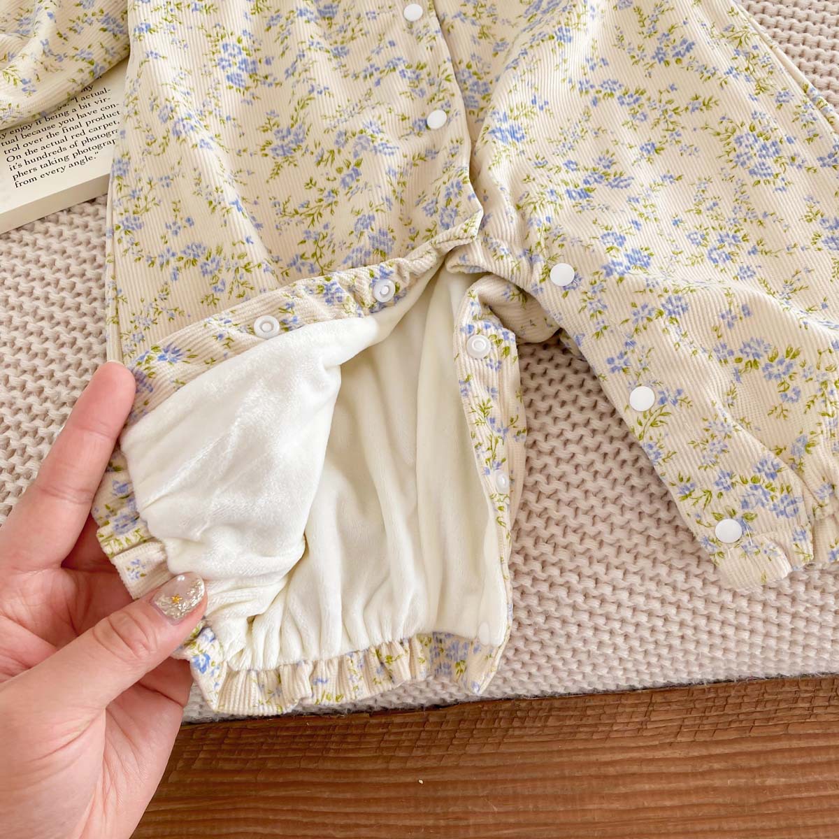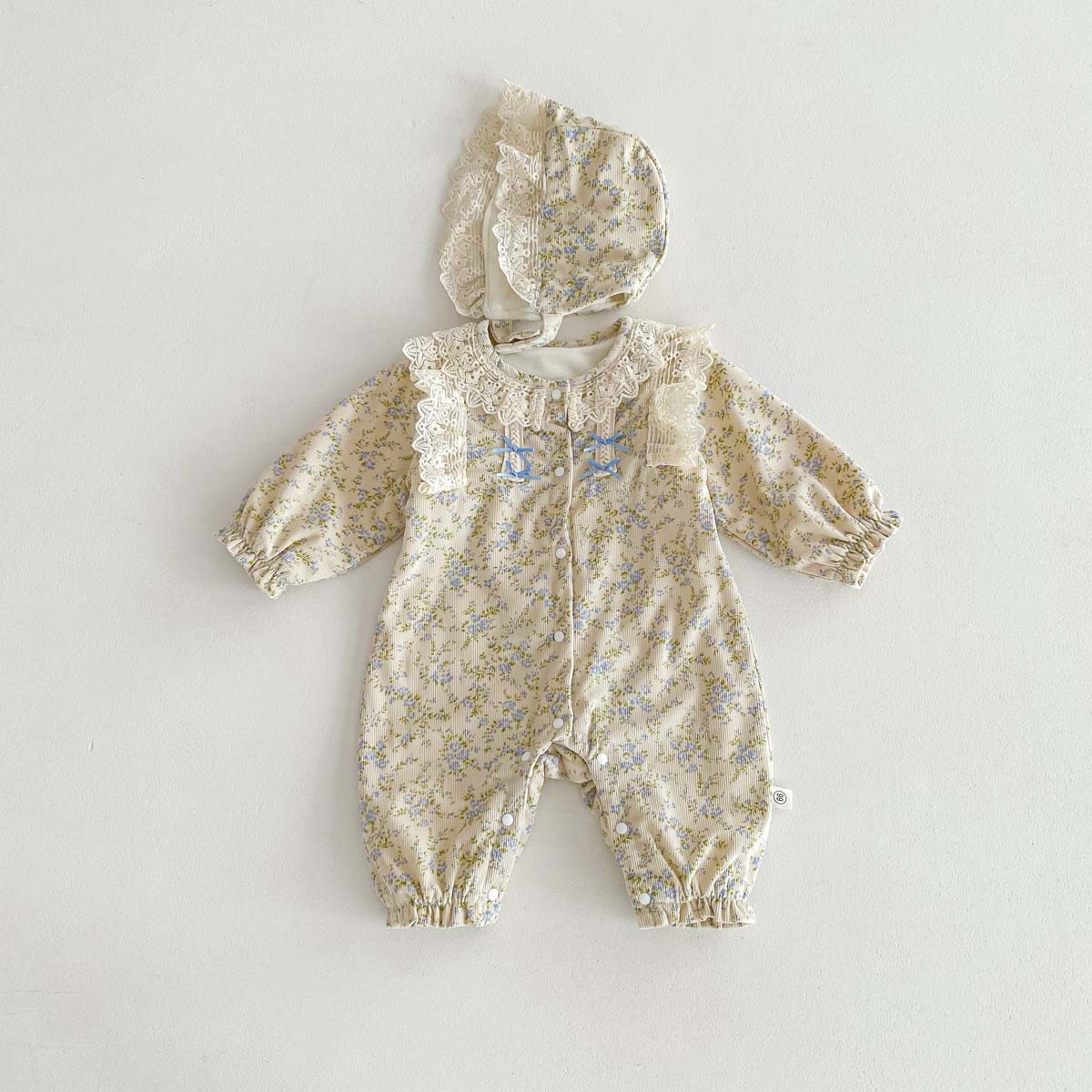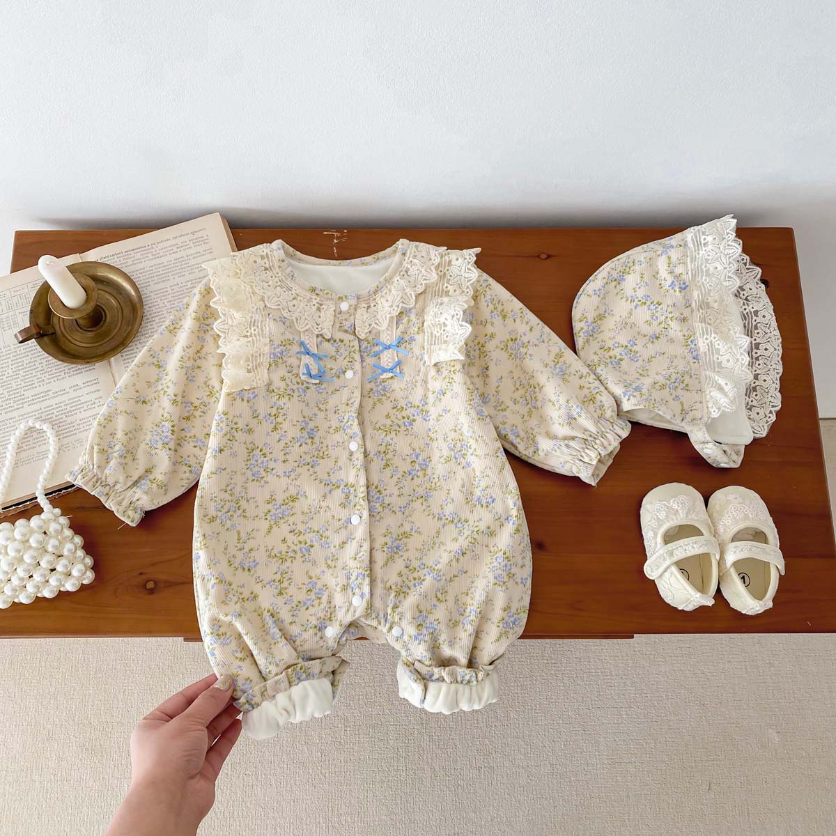 아기 가을 겨울 코듀로이 점프수트 여아용 레이스 패셔너블한 작은 꽃무늬 플러스 벨벳 보온 외출복스토어 가기