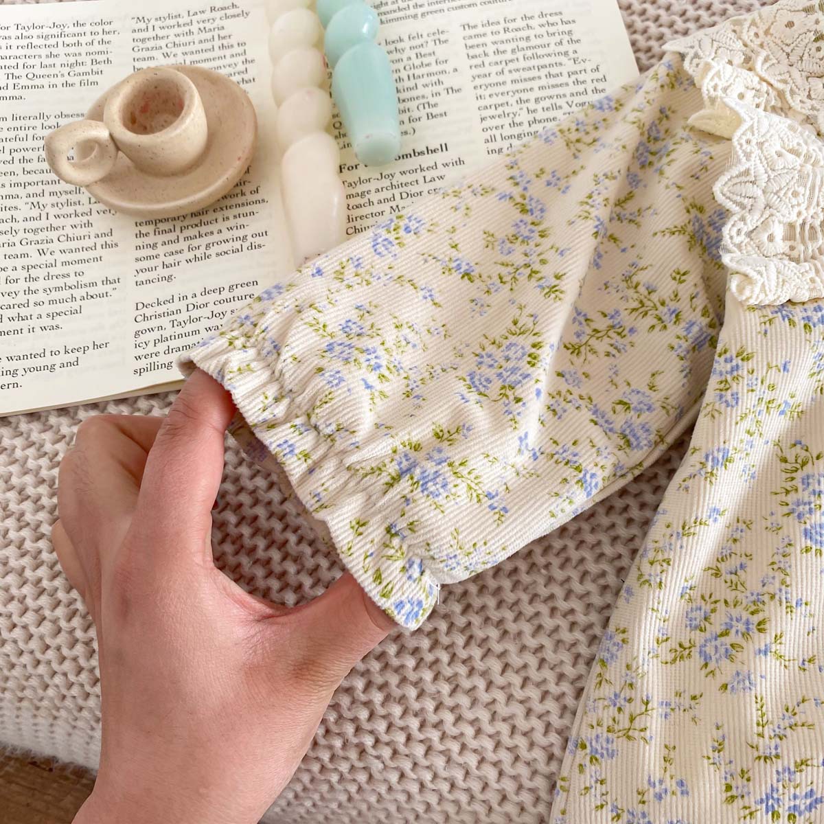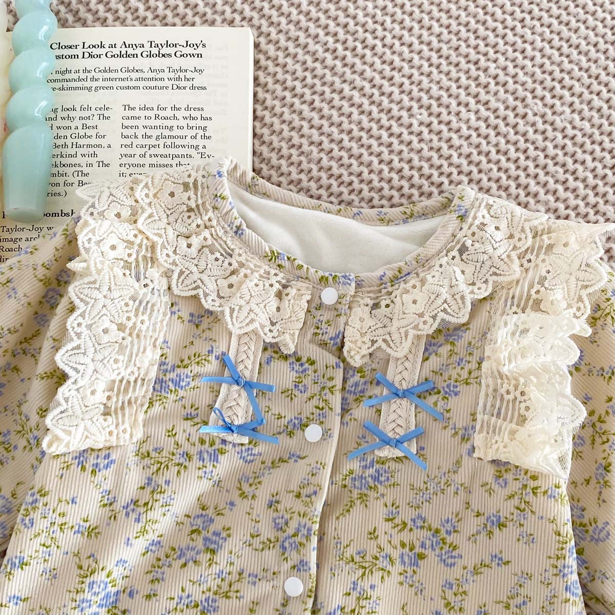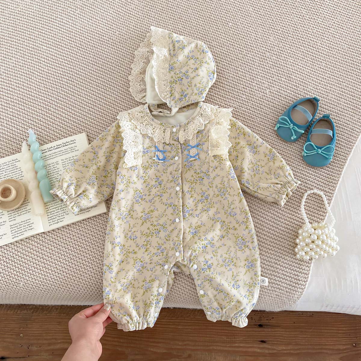 아기 가을 겨울 코듀로이 점프수트 여아용 레이스 패셔너블한 작은 꽃무늬 플러스 벨벳 보온 외출복스토어 가기