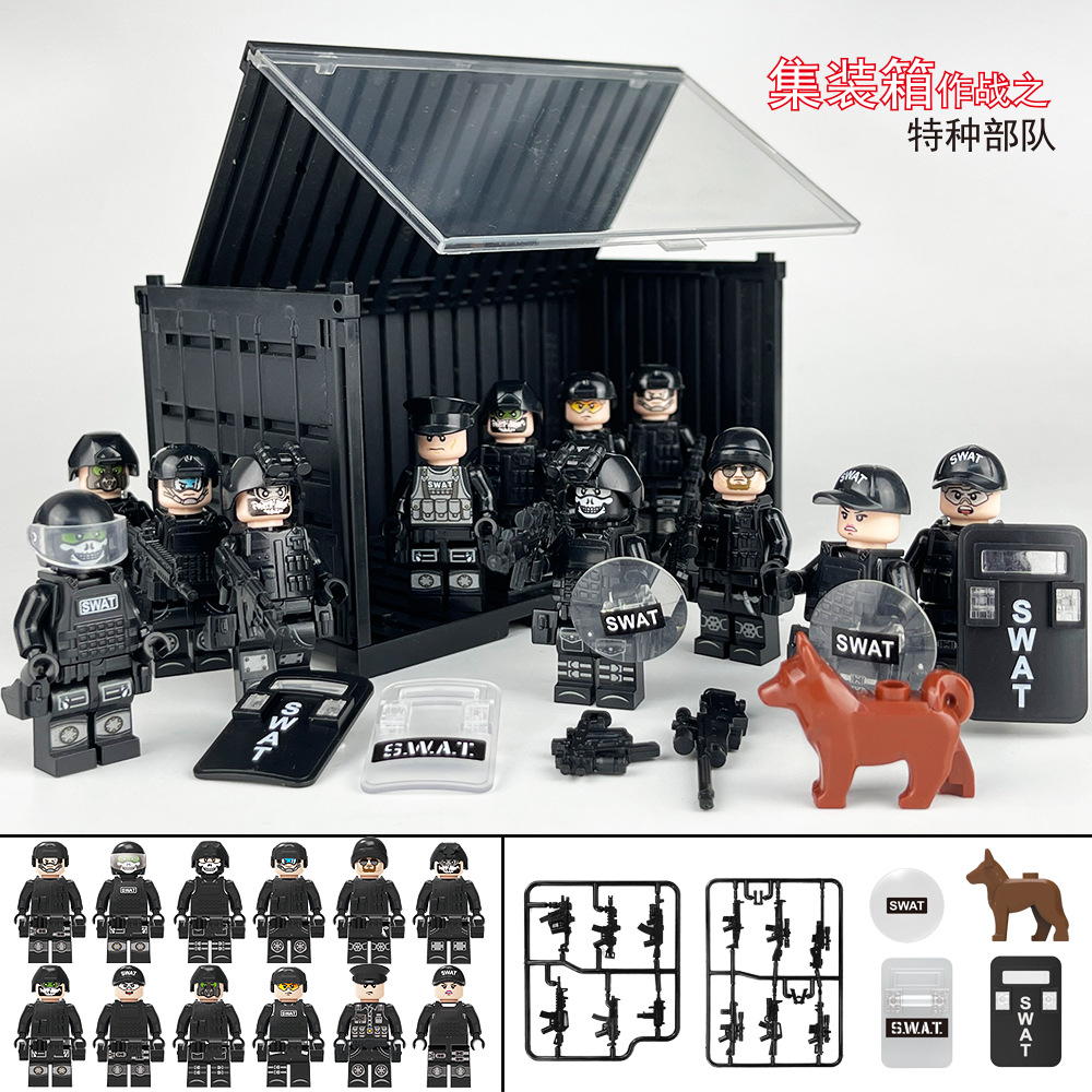 특수 경찰 무기 액세서리 팩 조합 군사 모델 작은 입자 빌딩 블록 재생 H-13 장비 상자 국경 도매스토어 가기
