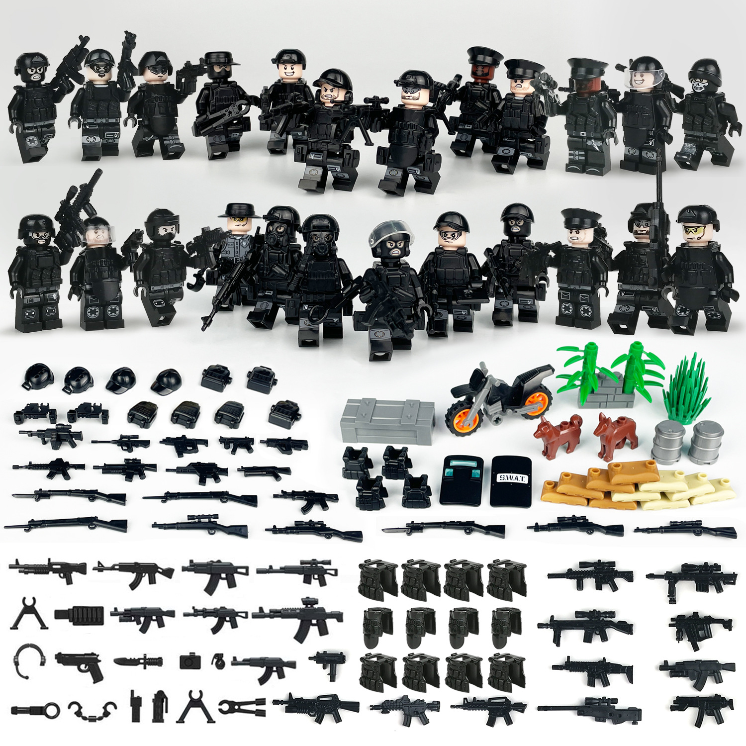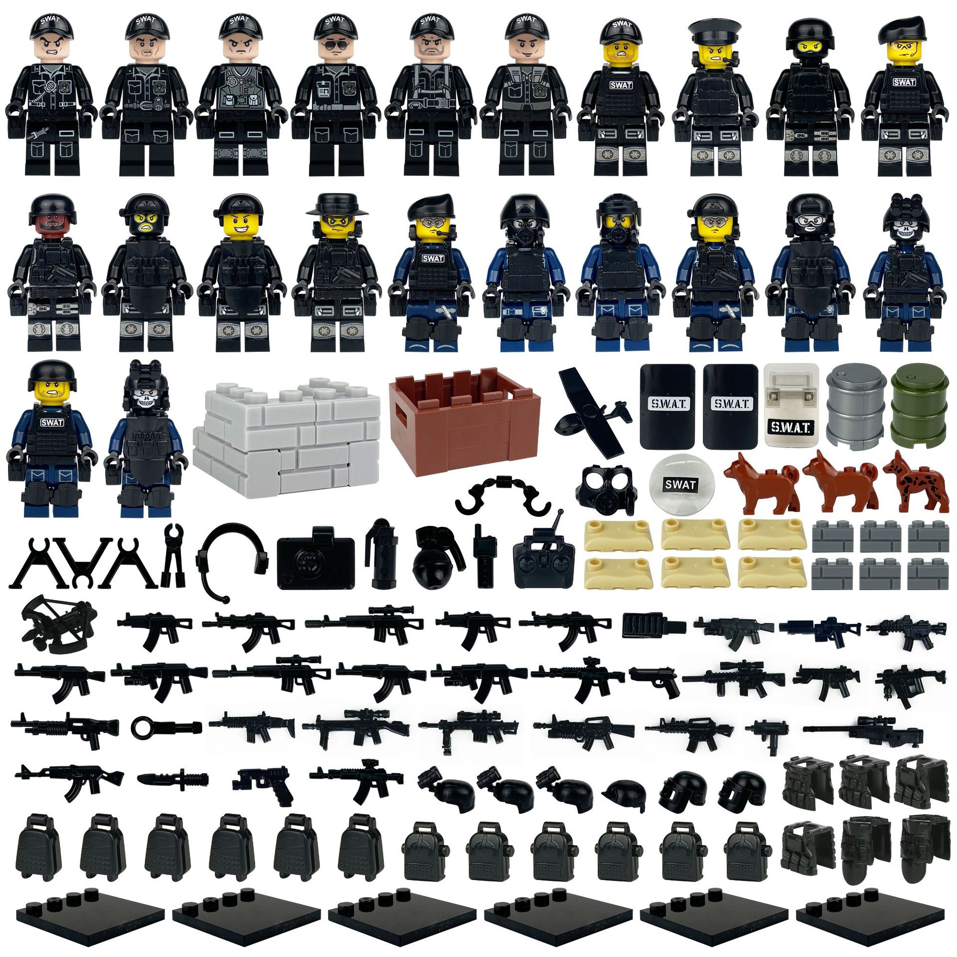 특수 경찰 무기 액세서리 팩 조합 군사 모델 작은 입자 빌딩 블록 재생 H-13 장비 상자 국경 도매