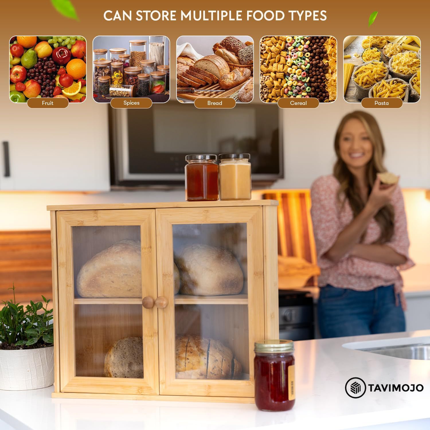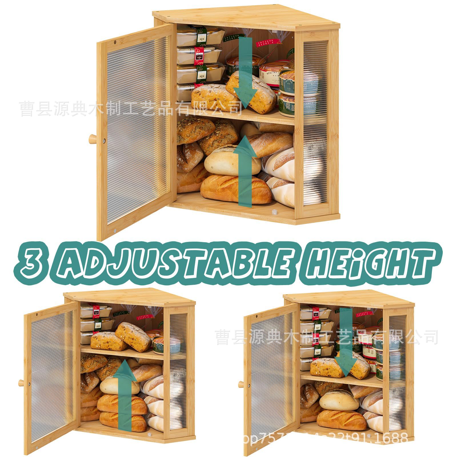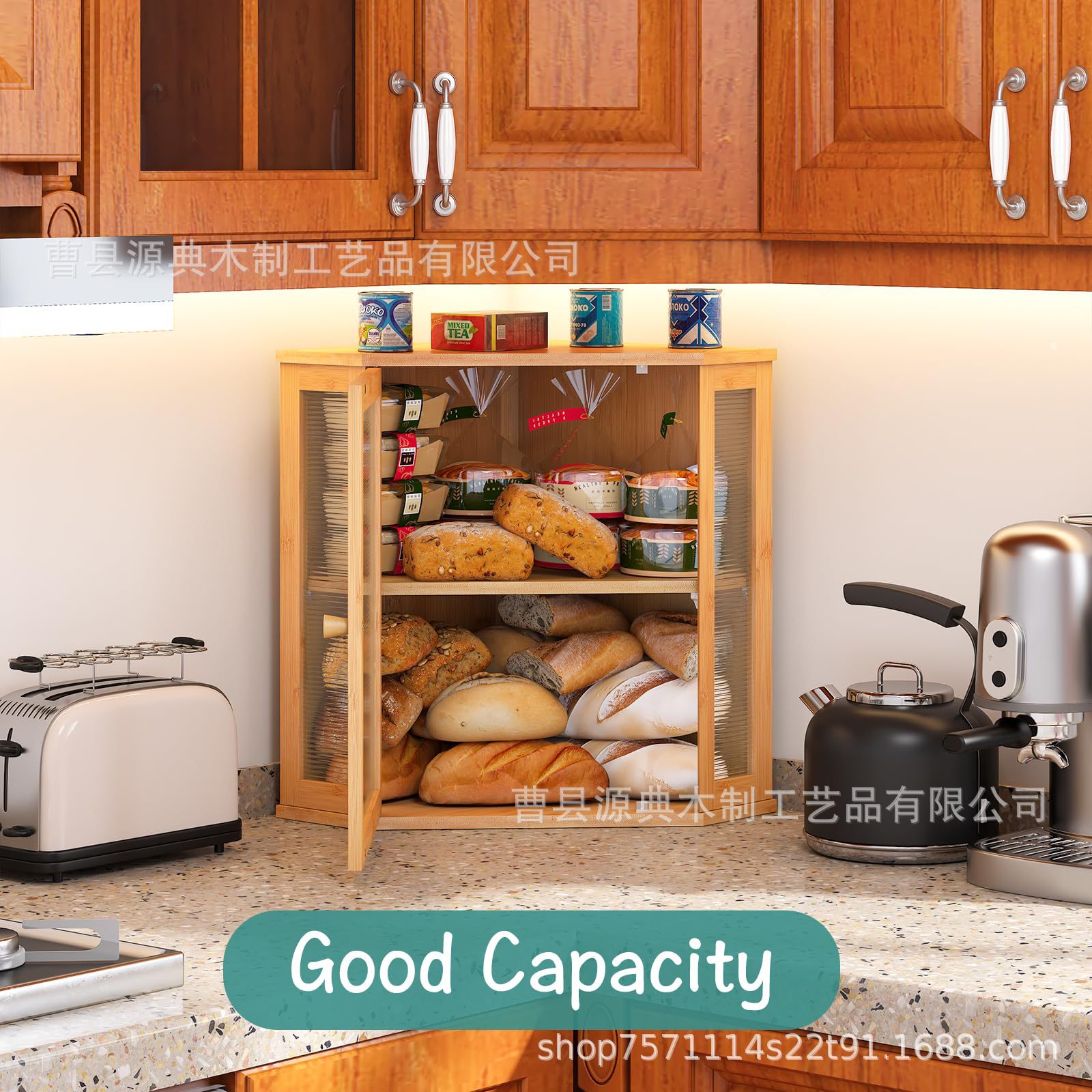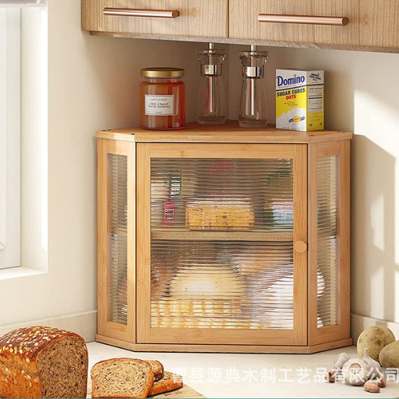 대나무 빵 상자 더블 레이어 빵 보관 상자 투명 아크릴 주방 보관 상자 투명 이중 도어 보관 상자