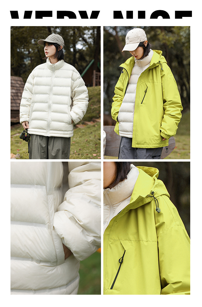 새로운 국가 표준 90 흰 오리 다운 마운틴 야외 3 대 1 이동식 다운 라이너 3 대 1 반팔 충전 옷