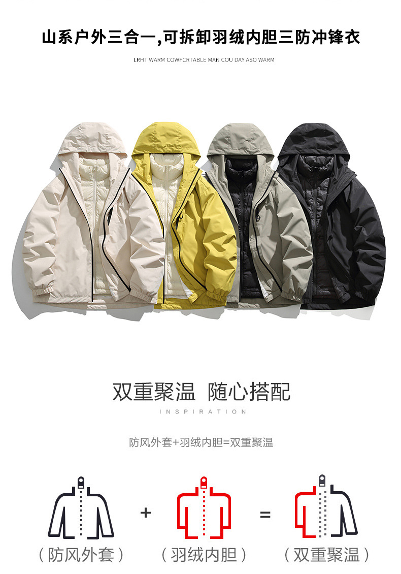 새로운 국가 표준 90 흰 오리 다운 마운틴 야외 3 대 1 이동식 다운 라이너 3 대 1 반팔 충전 옷스토어 가기