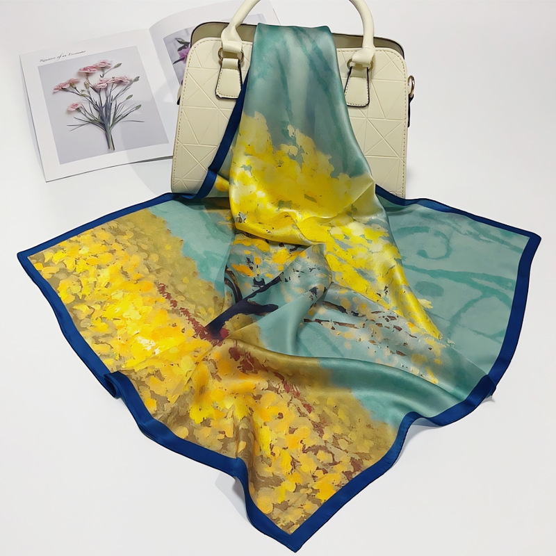항주 실크 스카프 여성의 봄 가을과 겨울 새로운 다용도 뽕나무 실크 크레이프 새틴 70 스퀘어 스카프 손 선물 스카프 도매