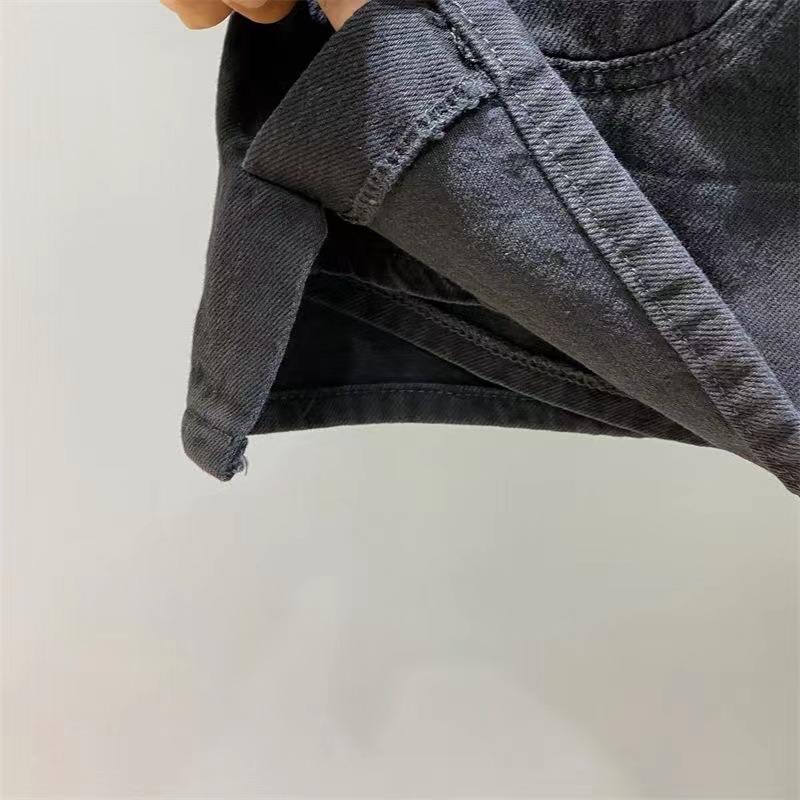 여아용 2025년 봄 신상 한국 스타일 신축성 있는 이중 허리밴드 슬릿 포켓 데님 하이웨이스트 A라인 미니스커트