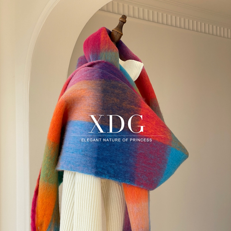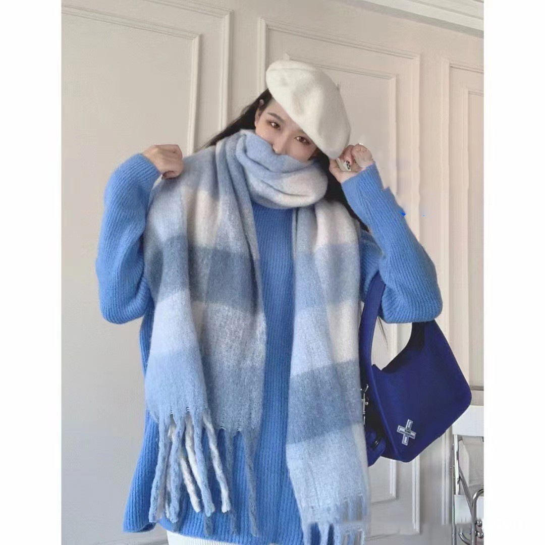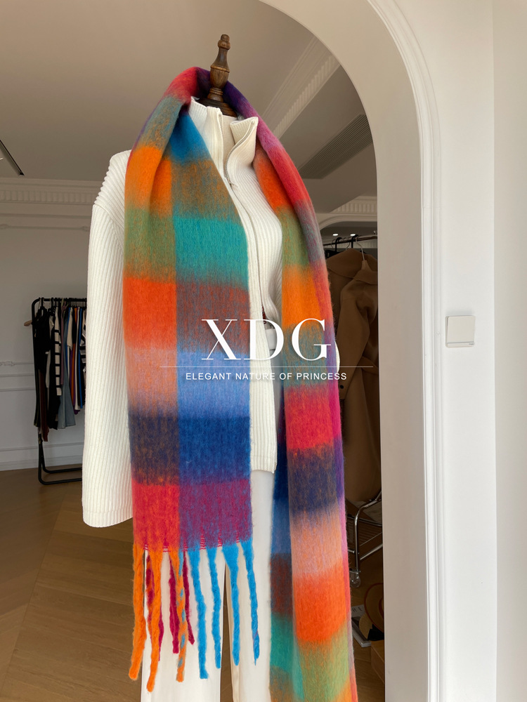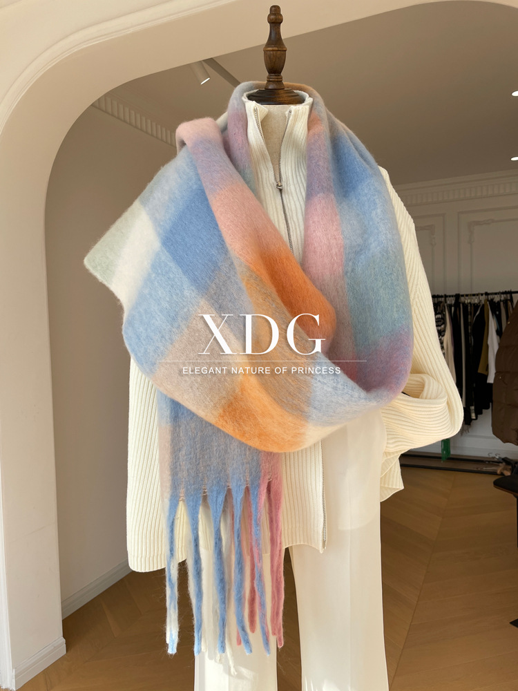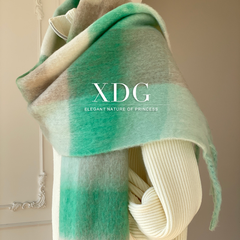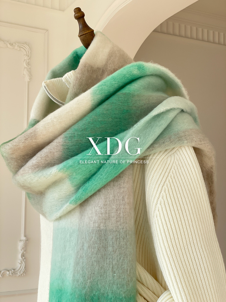 유럽과 미국의 큰 브랜드 고급 섬세한 부드러운 그라디언트 격자 무늬 색상 매칭 술 캐시미어 대형 목도리 촬영 여행 경기스토어 가기