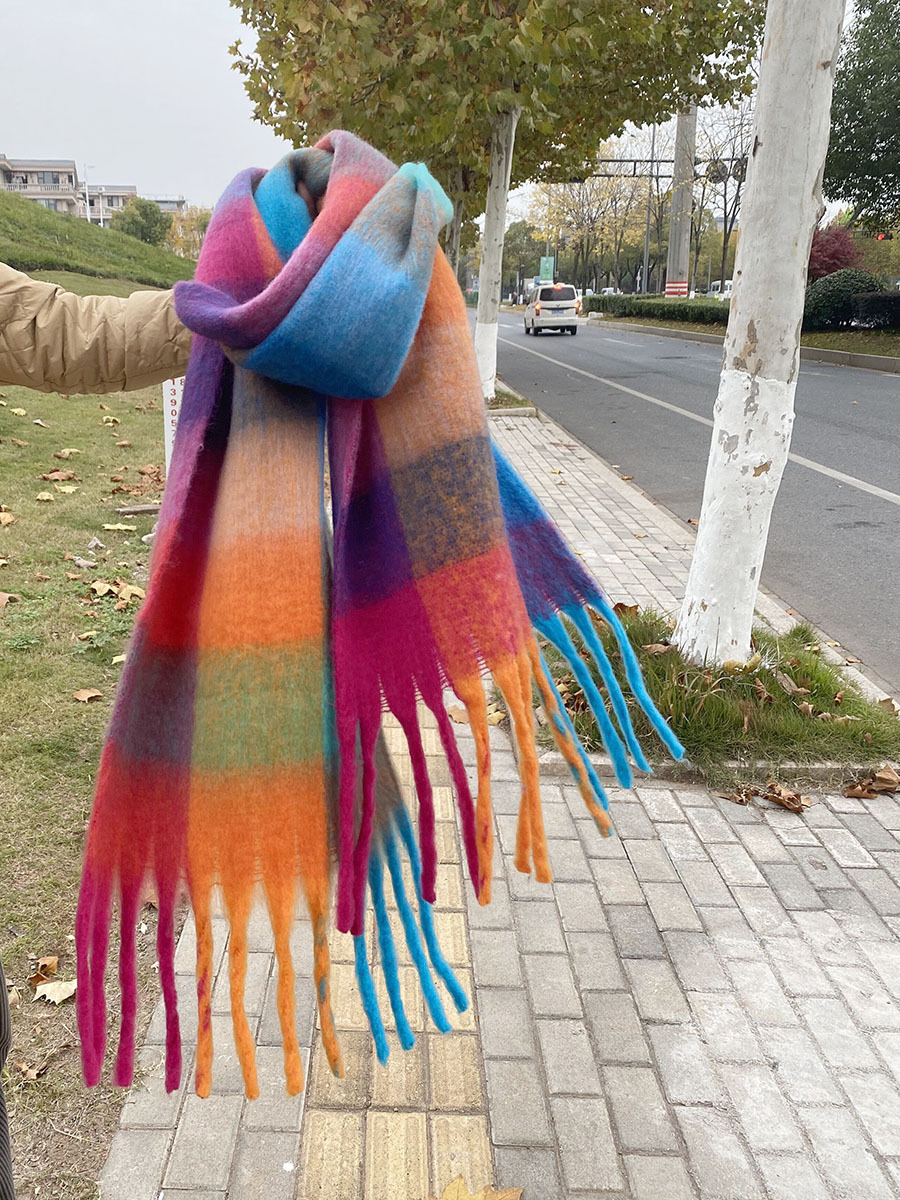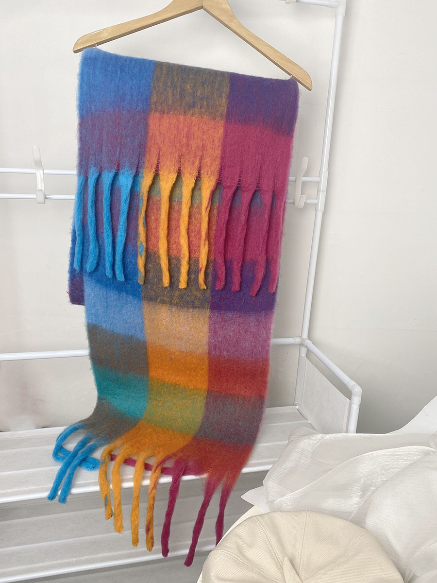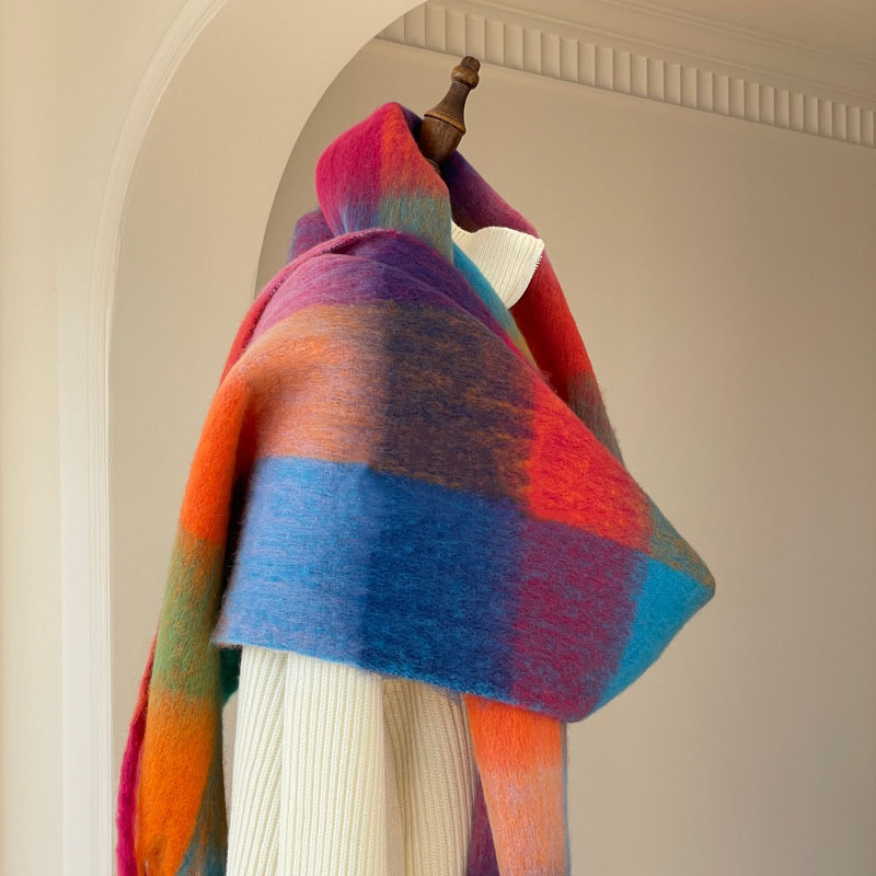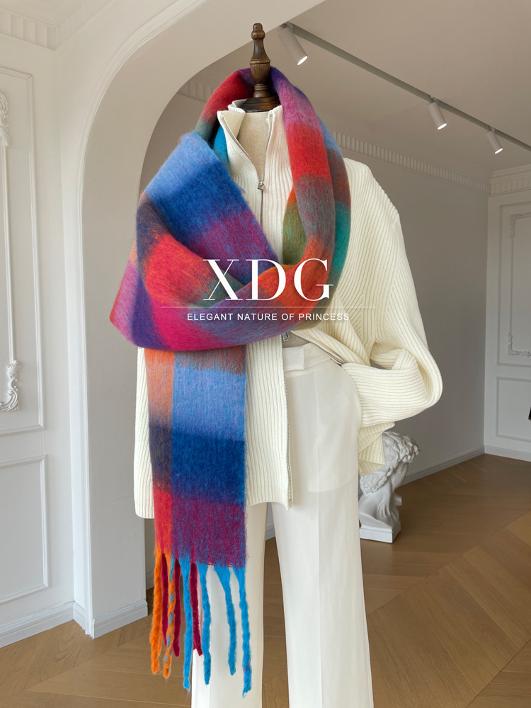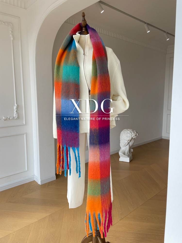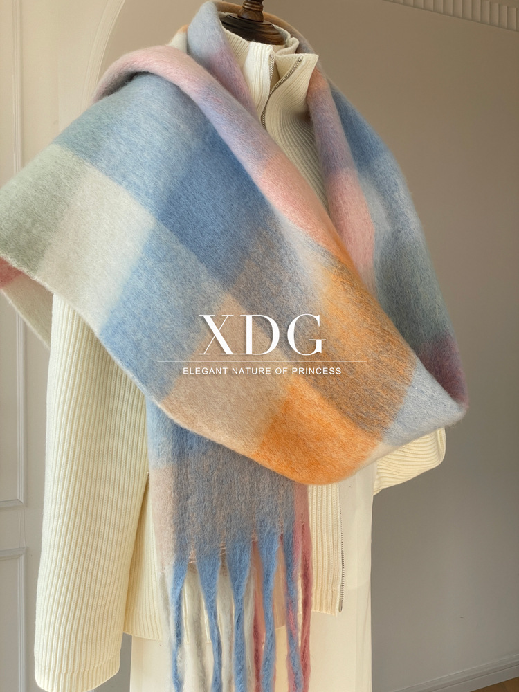 유럽과 미국의 큰 브랜드 고급 섬세한 부드러운 그라디언트 격자 무늬 색상 매칭 술 캐시미어 대형 목도리 촬영 여행 경기스토어 가기
