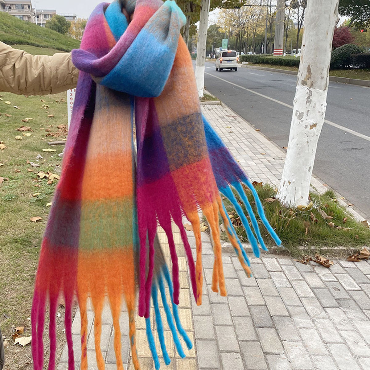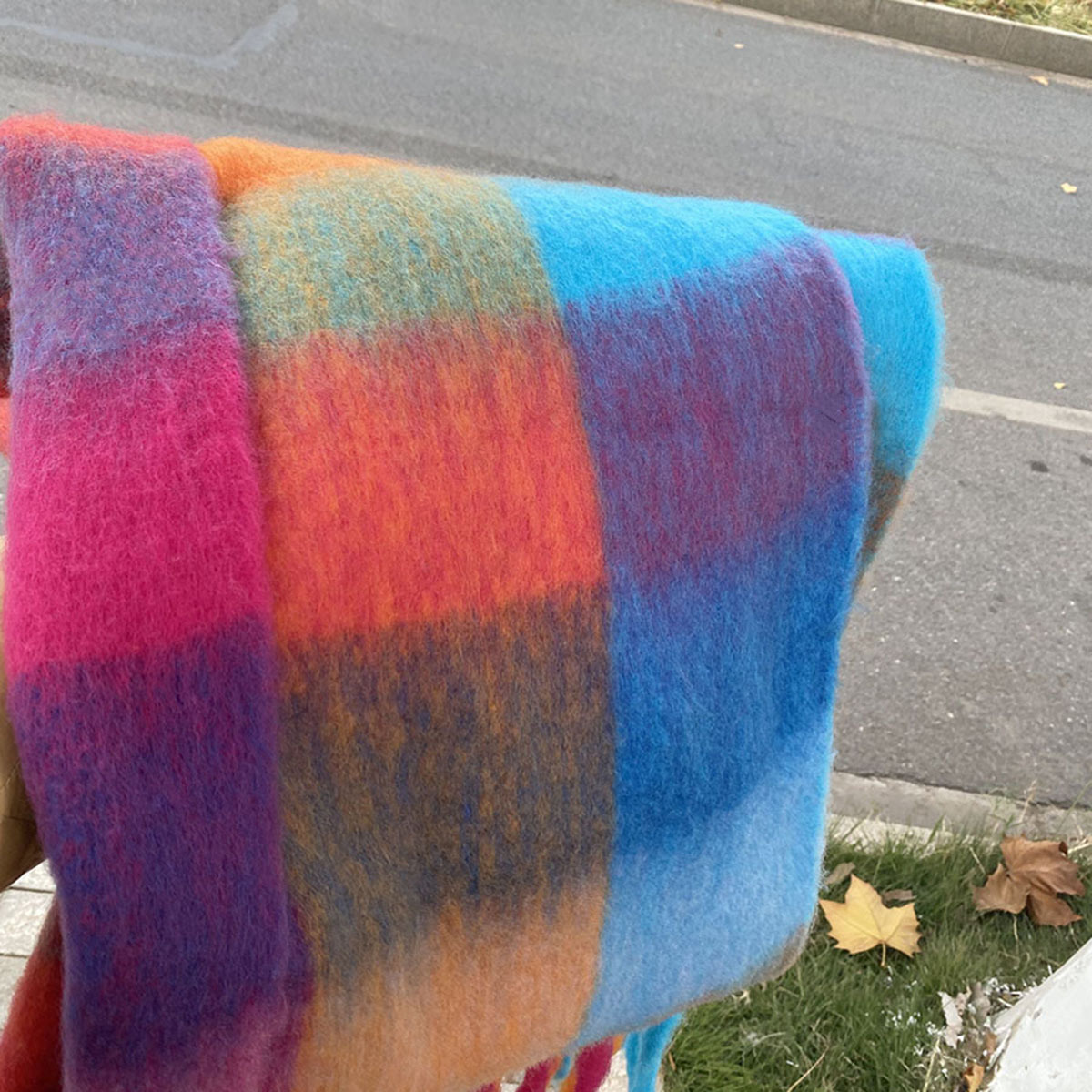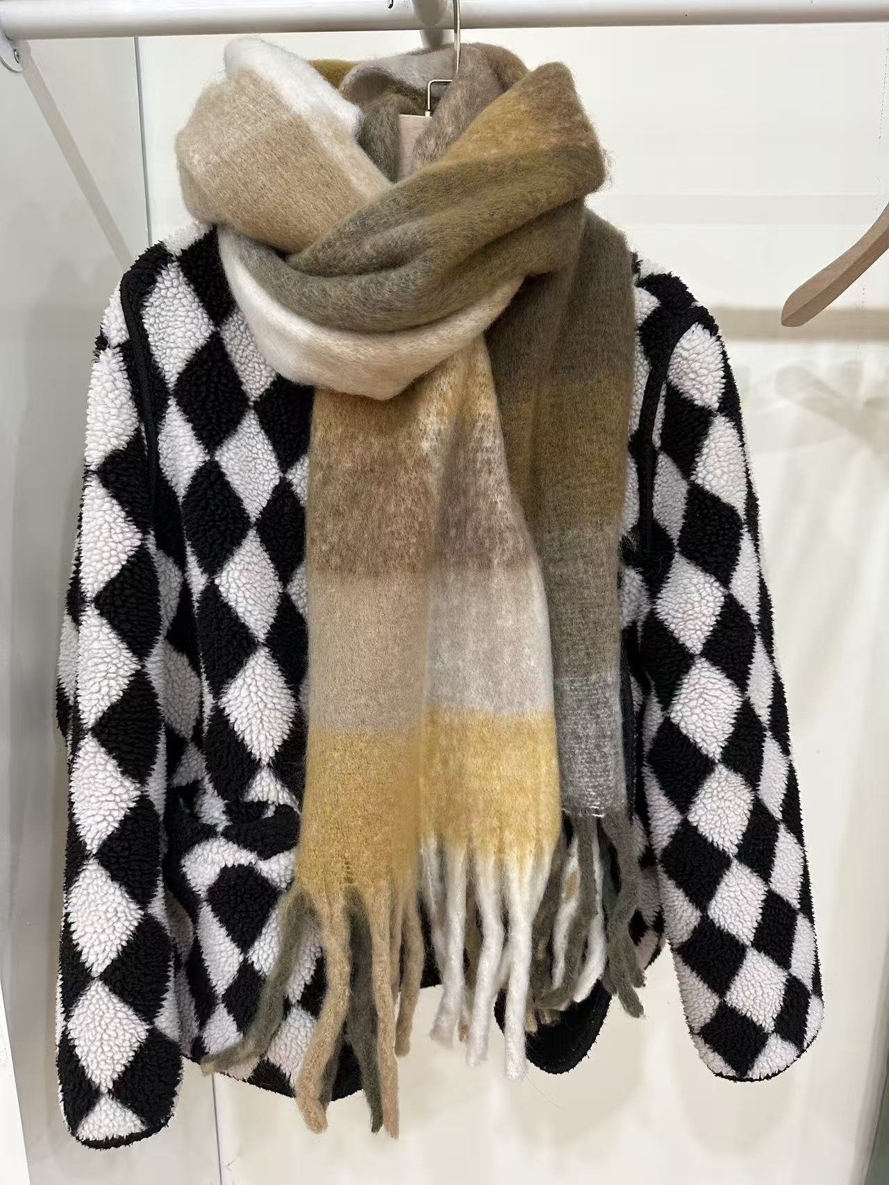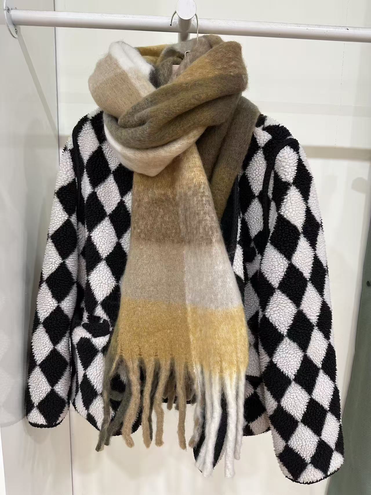 유럽과 미국의 큰 브랜드 고급 섬세한 부드러운 그라디언트 격자 무늬 색상 매칭 술 캐시미어 대형 목도리 촬영 여행 경기스토어 가기