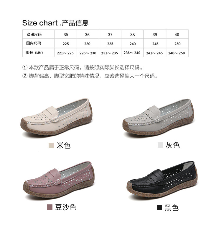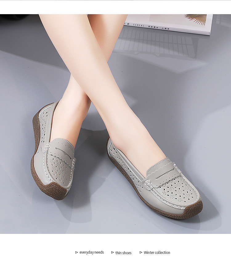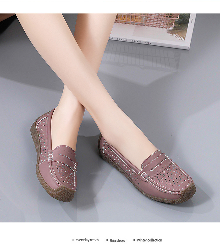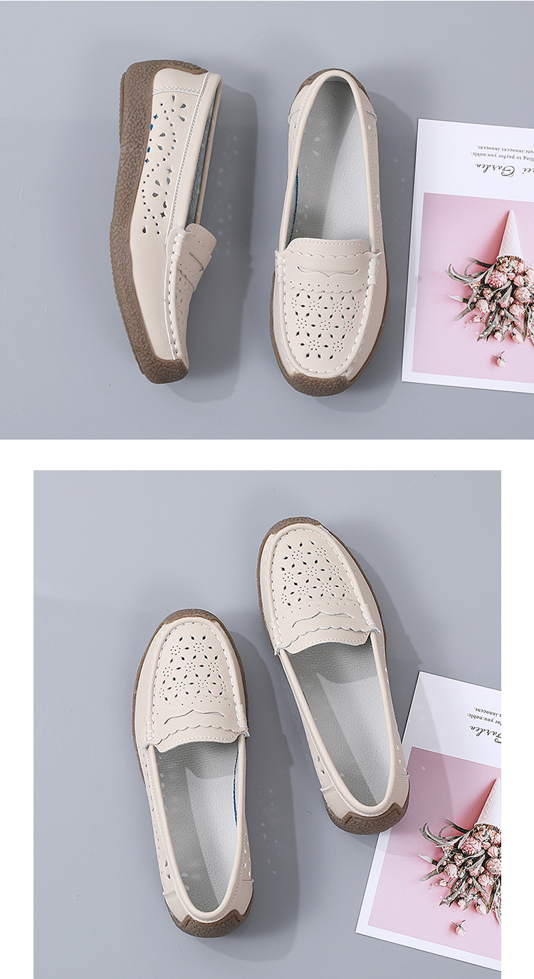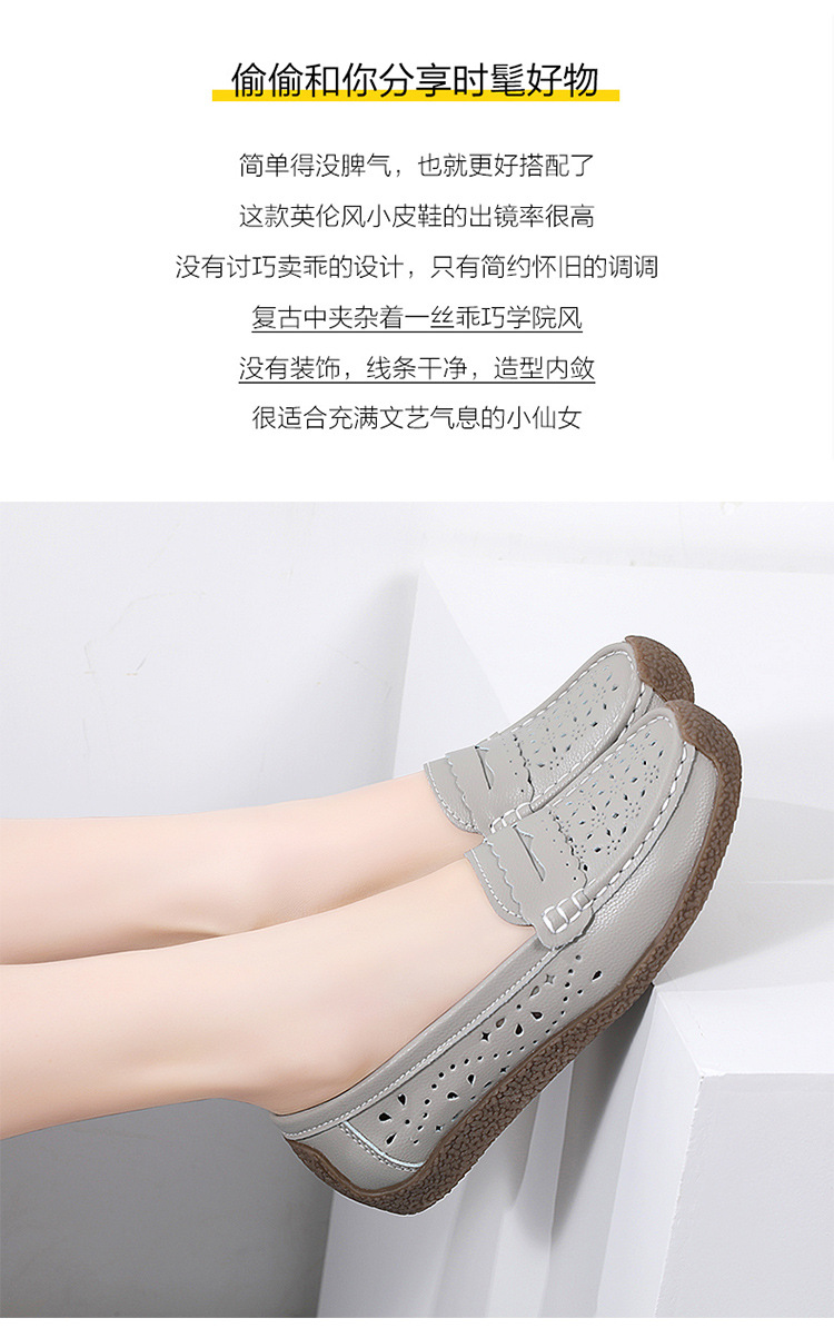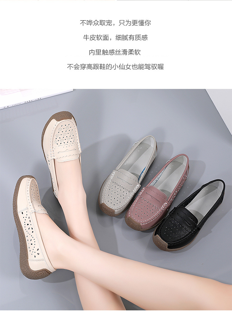 봄 새 여성 신발 속이 빈 어머니 여성 신발 사계절 게으른 신발 쇠고기 단독 단층 신발 여성용 모든 매치 플랫 빈 신발스토어 가기
