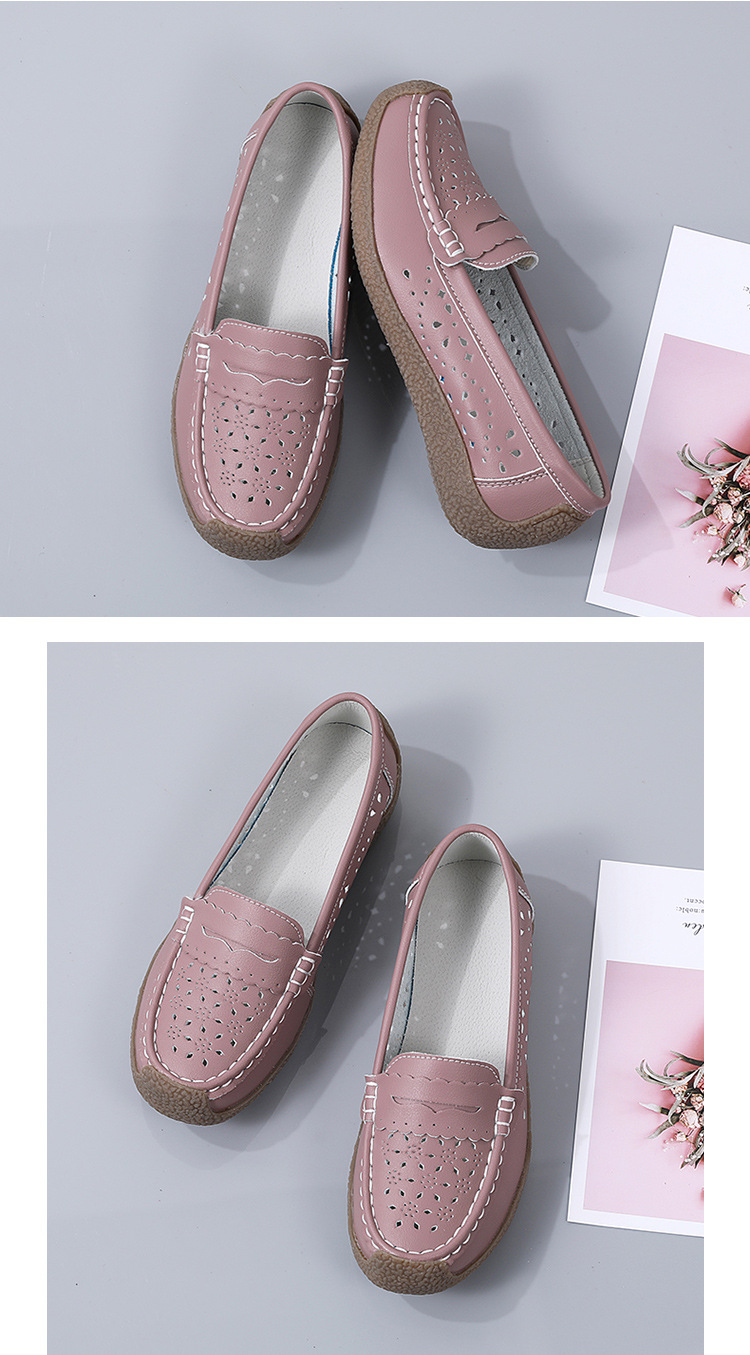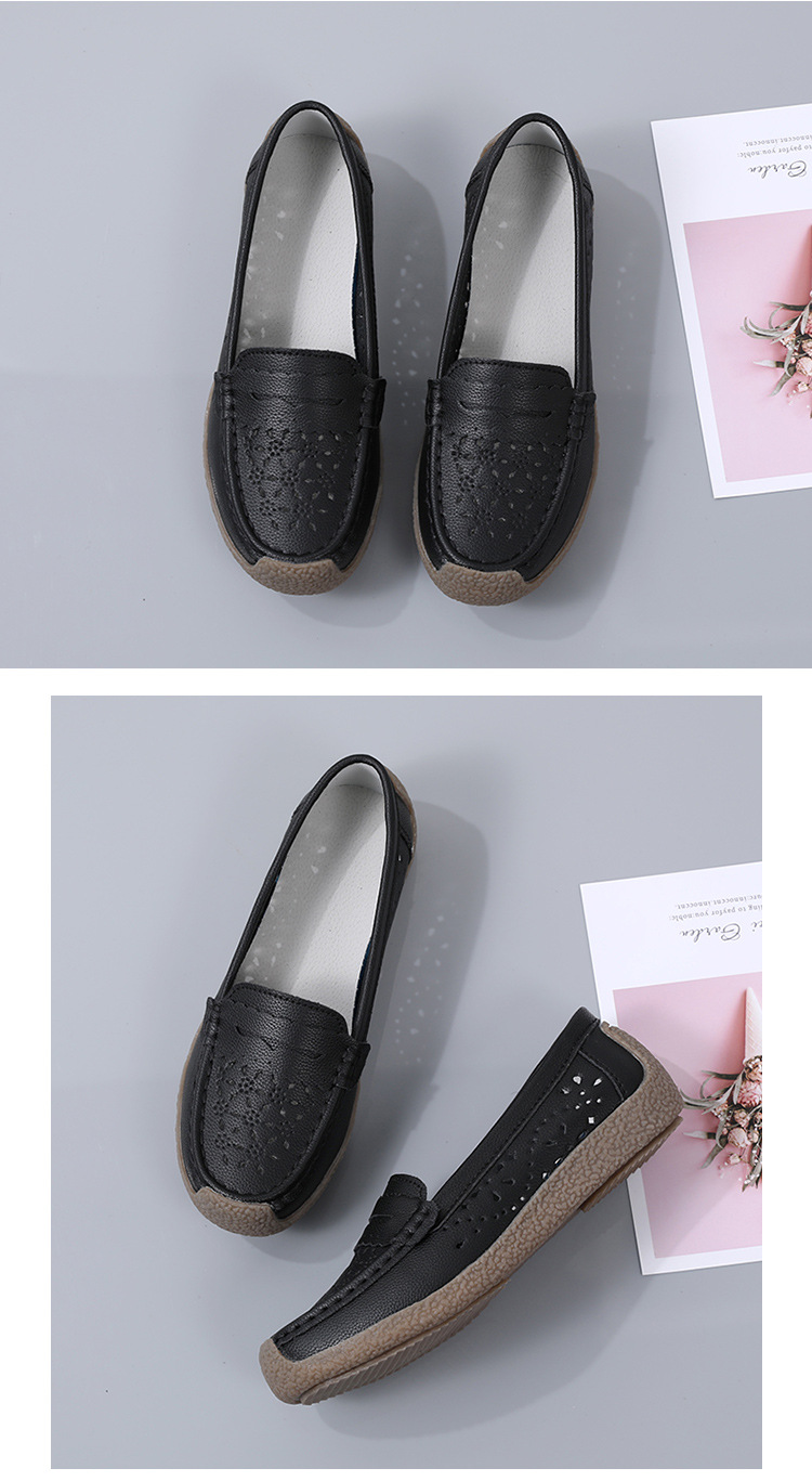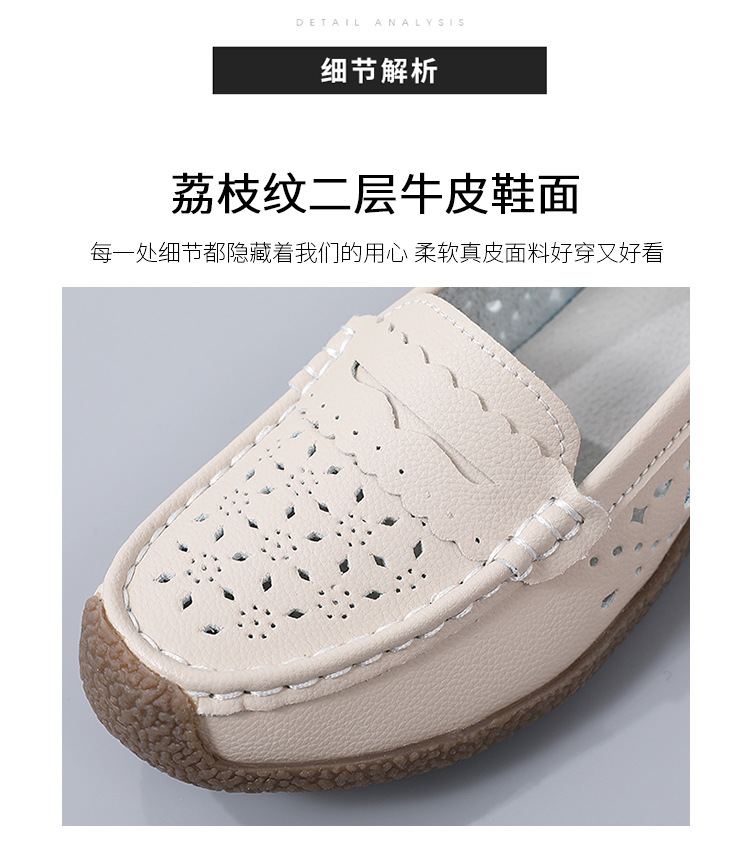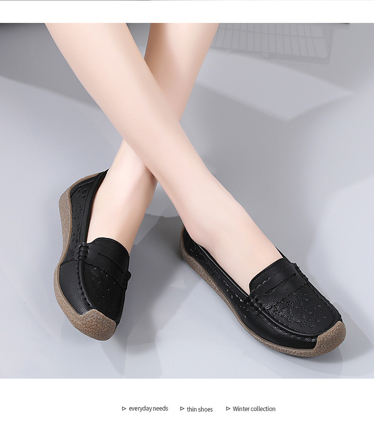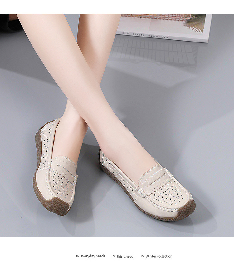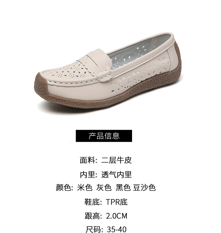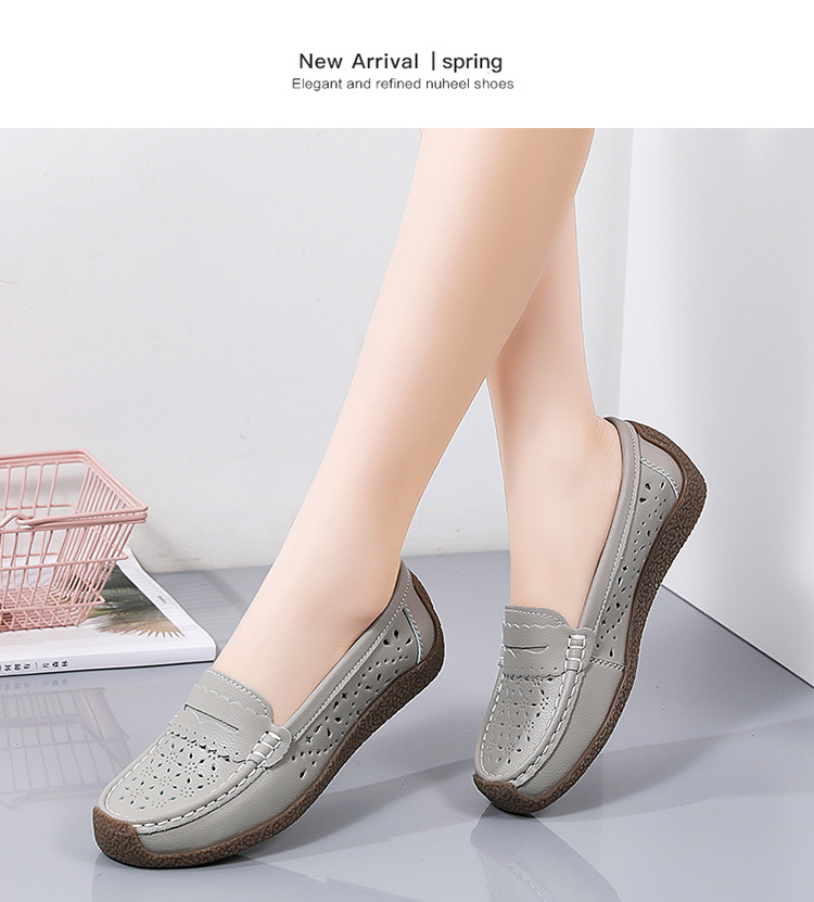 봄 새 여성 신발 속이 빈 어머니 여성 신발 사계절 게으른 신발 쇠고기 단독 단층 신발 여성용 모든 매치 플랫 빈 신발스토어 가기