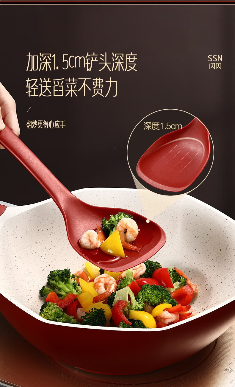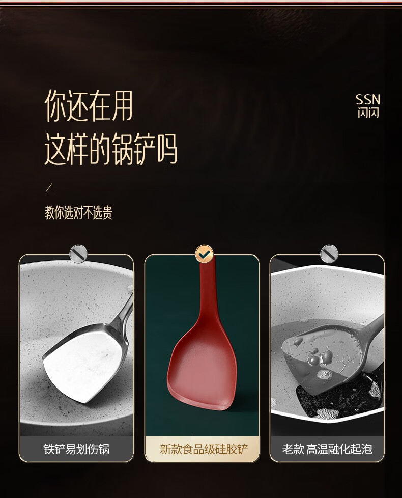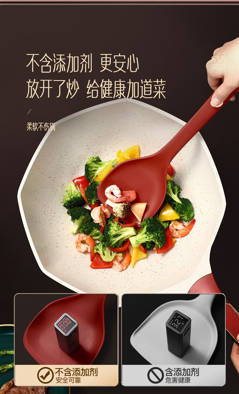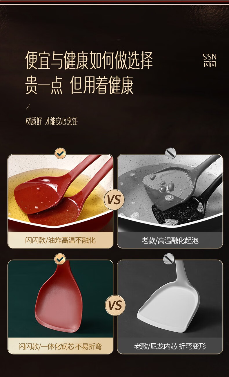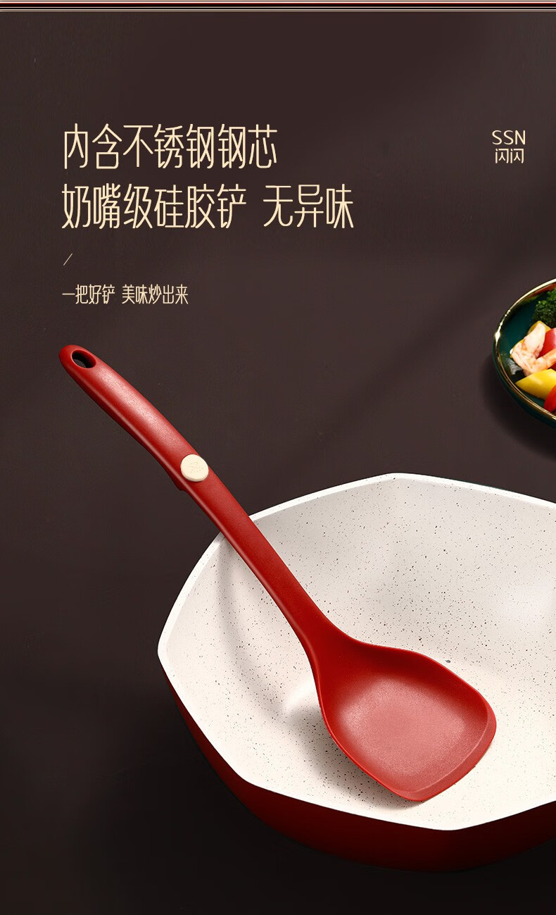 반짝이는 실리콘 냄비 삽 식품 등급 내장 스테인레스 스틸 볶음 삽 가정용 고온 저항 붙지 않는 냄비 삽스토어 가기