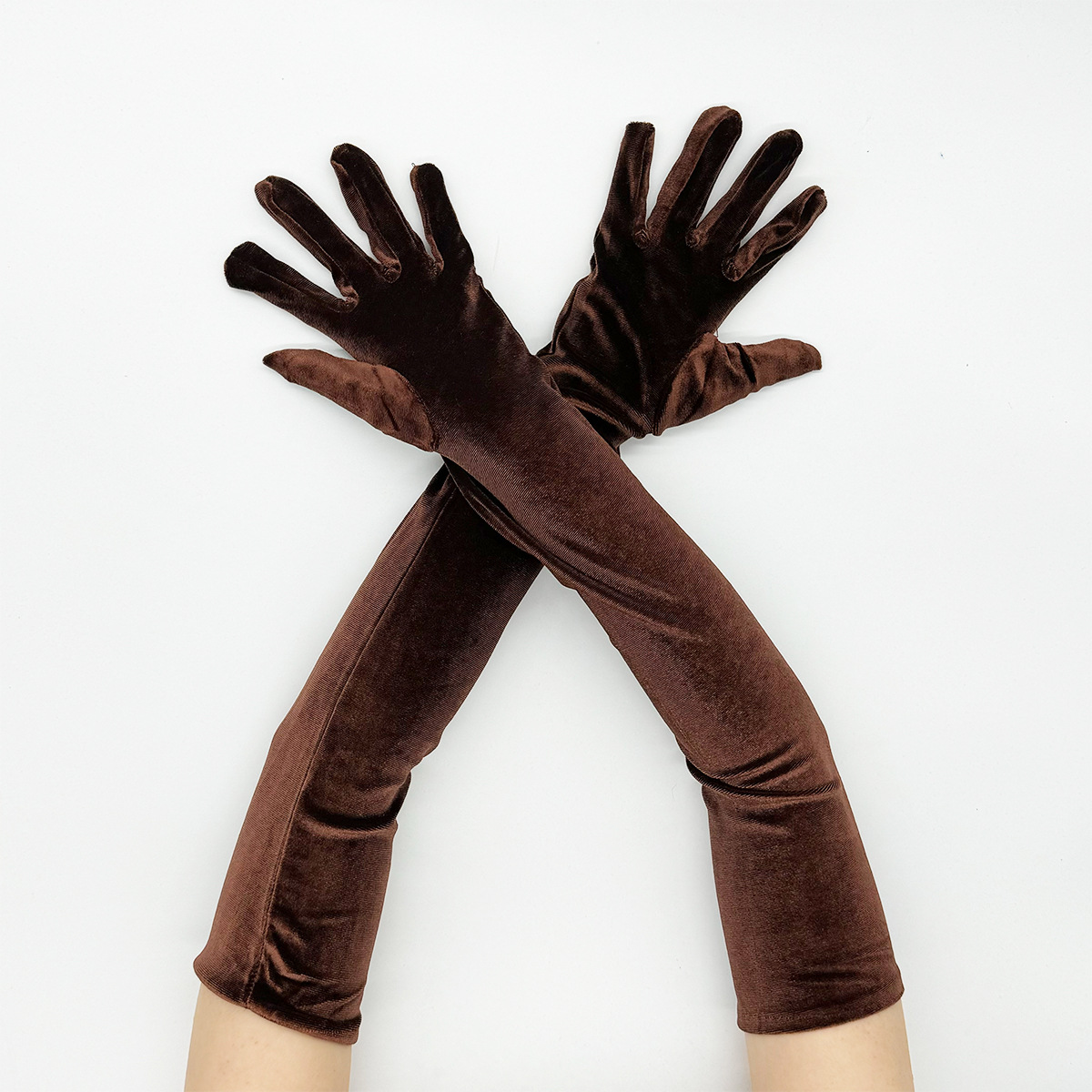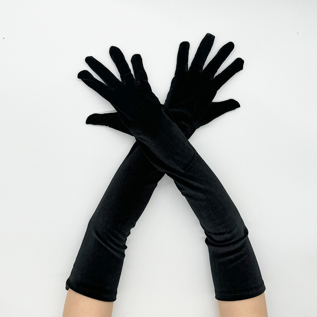 겨울 긴 두꺼운 황금 벨벳 장갑 무대 성능 에티켓 원피스 장갑 1920 년대 복고풍 댄스 장갑