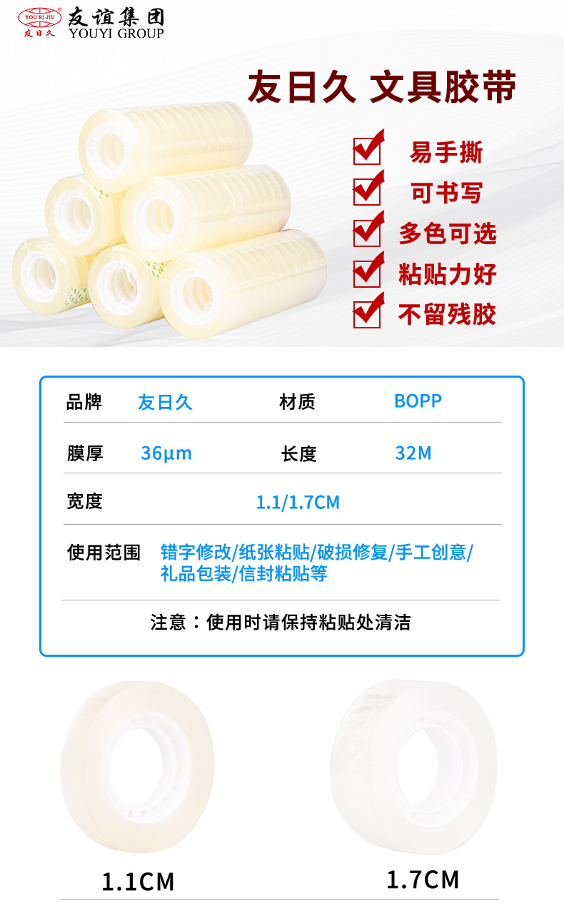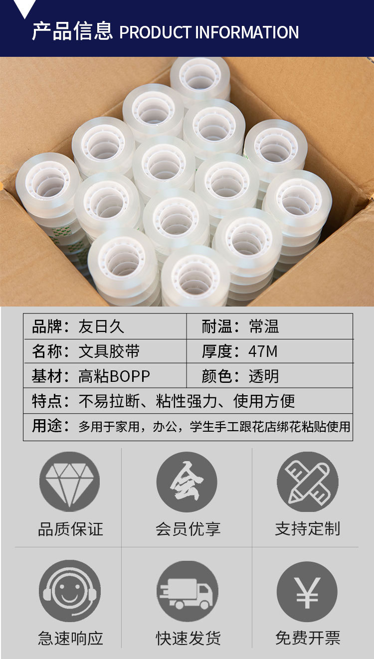 友日久封箱胶带透明淘宝整箱大卷批发厂家胶布打包定制胶纸快递