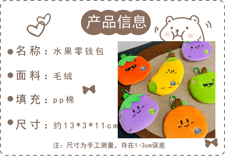 오리지널 과일 동전 지갑 시리즈, 플러시 천 지갑 펜던트, 어린이 동전 지갑, 이어폰 수납 가방, 대용량 가방스토어 가기