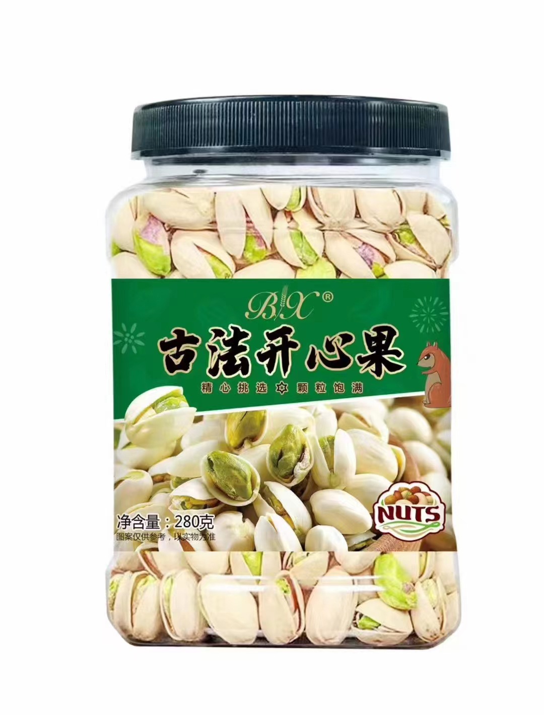 홍콩 Boxiang 고대 피스타치오 280g 투명 포장 선물 상자 고객 복지를위한 새해 너트 도매