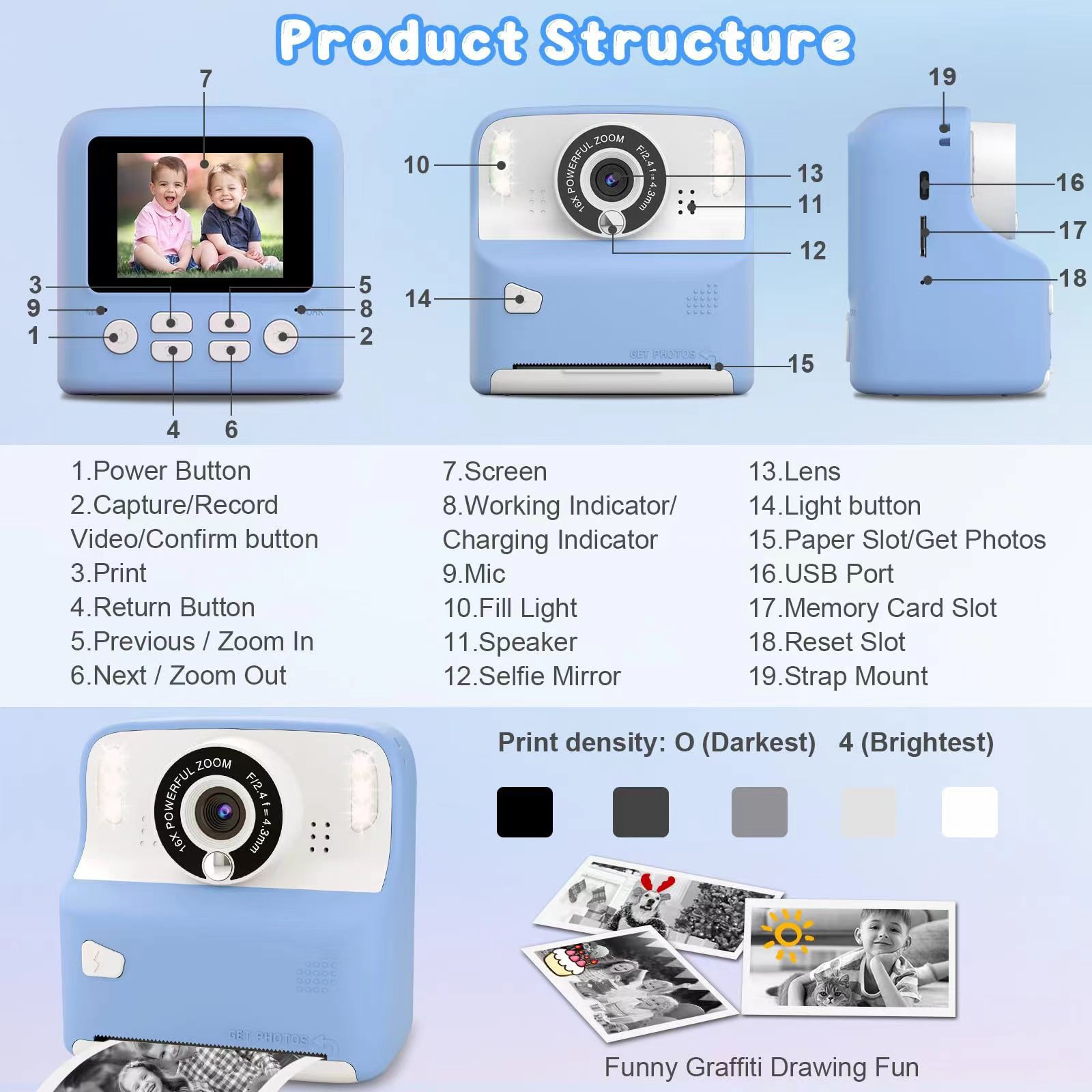 相机、说明书、充电线、挂绳、打印纸 读卡器 贴纸 彩笔