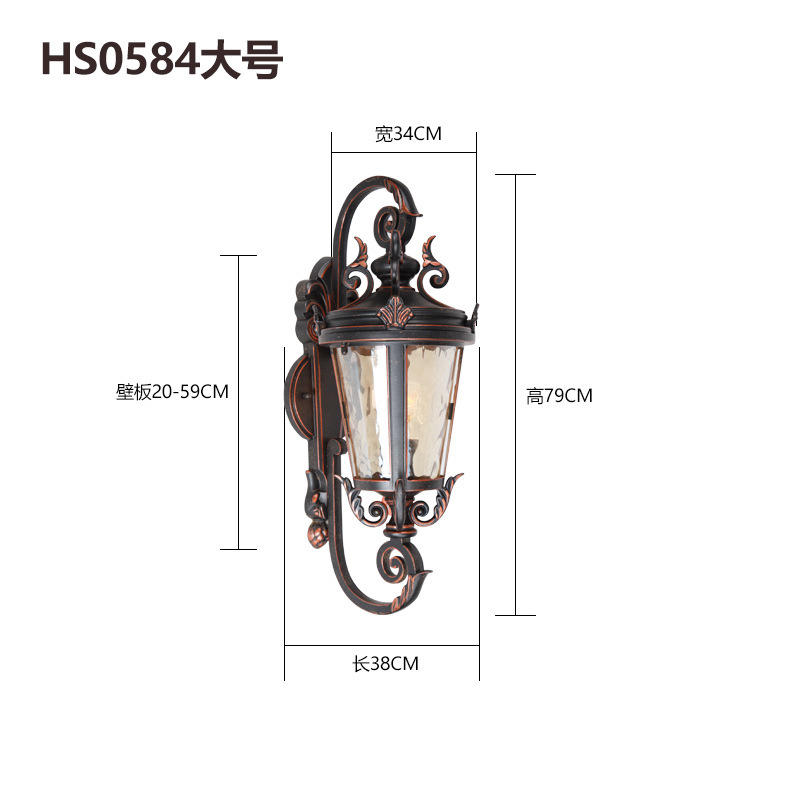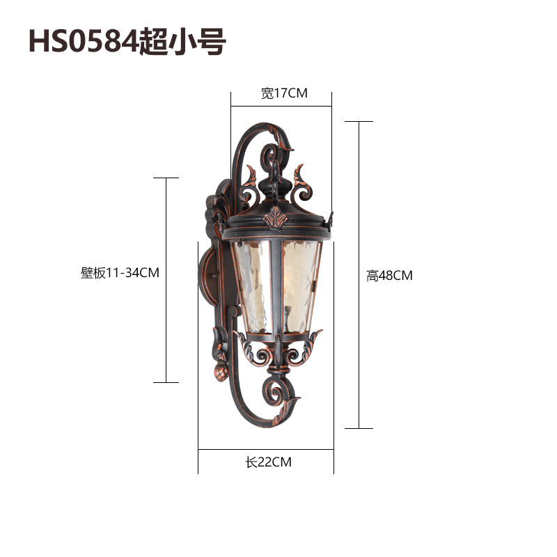 E27 유럽 레트로 벽 램프 야외 방수 빌라 외부 벽 램프 코트야드 발코니 배선 청동 골동품 벽 램프