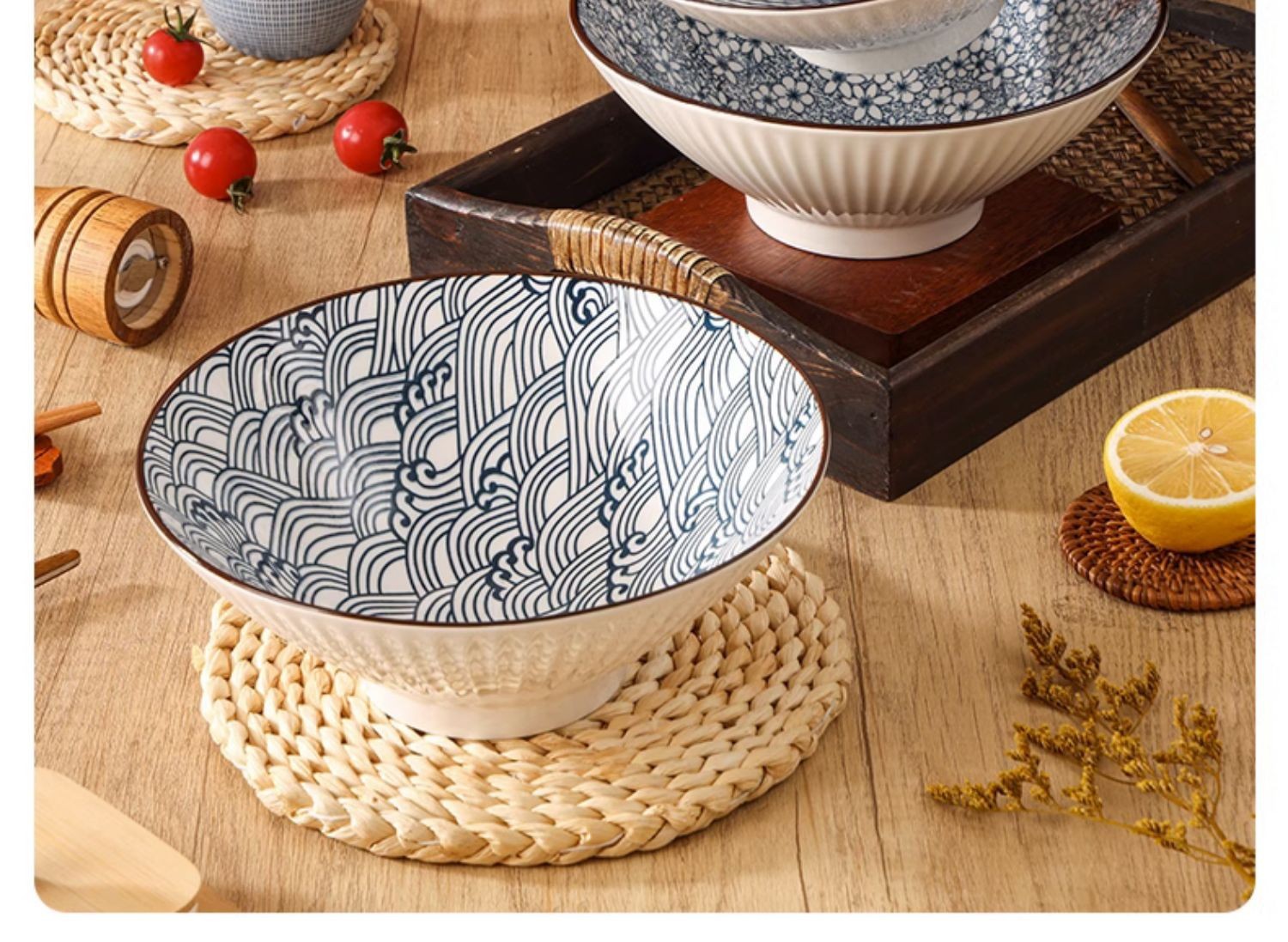 일본식 국수 그릇 가정용 대형 그릇 경적 그릇 세라믹 양동이 그릇 라면 그릇 끓는 방지 국수 그릇 바람 식기 세트스토어 가기