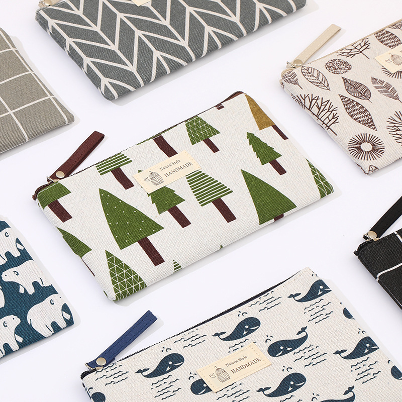 재고 도매 캔버스 화장품 가방 만화 학생 연필 가방 동전 지갑 여자의 손 휴대용 세척 보관 가방