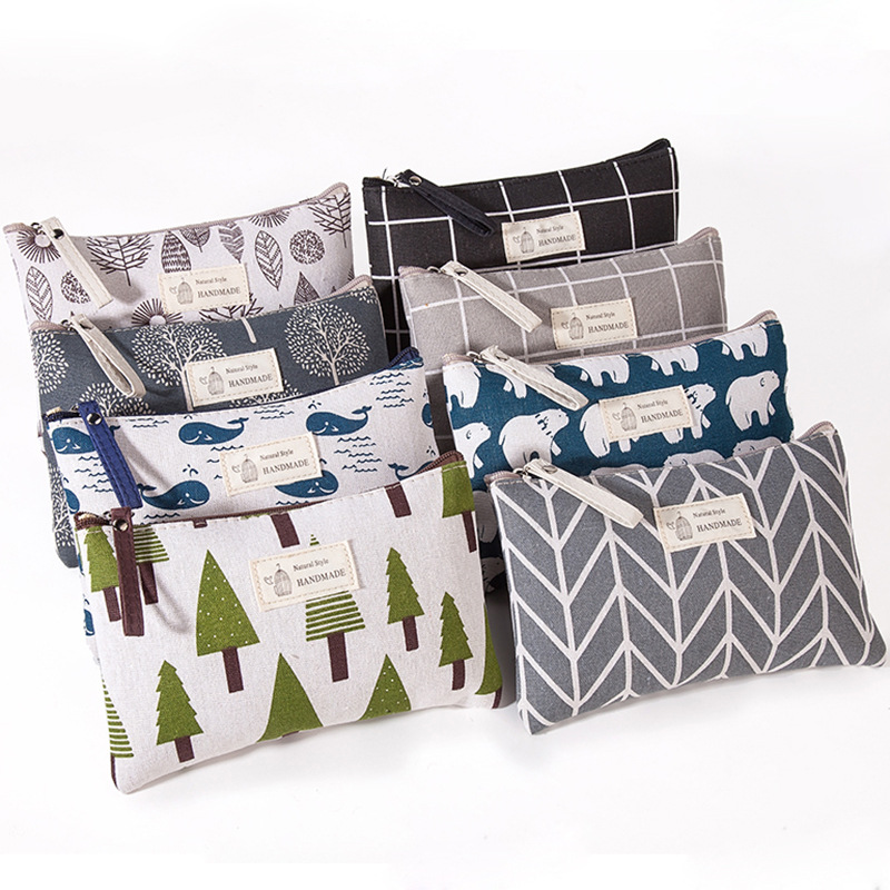 재고 도매 캔버스 화장품 가방 만화 학생 연필 가방 동전 지갑 여자의 손 휴대용 세척 보관 가방스토어 가기