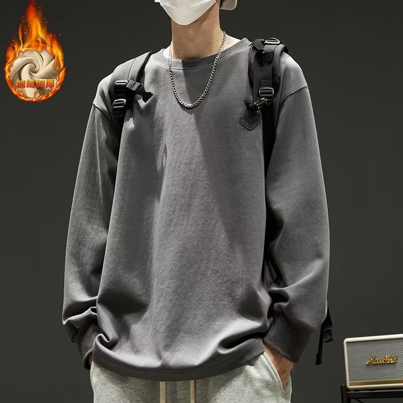 2023 가을/겨울 새로운 라운드넥 스웨터 플러스 사이즈 따뜻한 백킹 셔츠 두꺼운 루즈한 재킷 심플 모든 매치 트렌디 헤어스토어 가기
