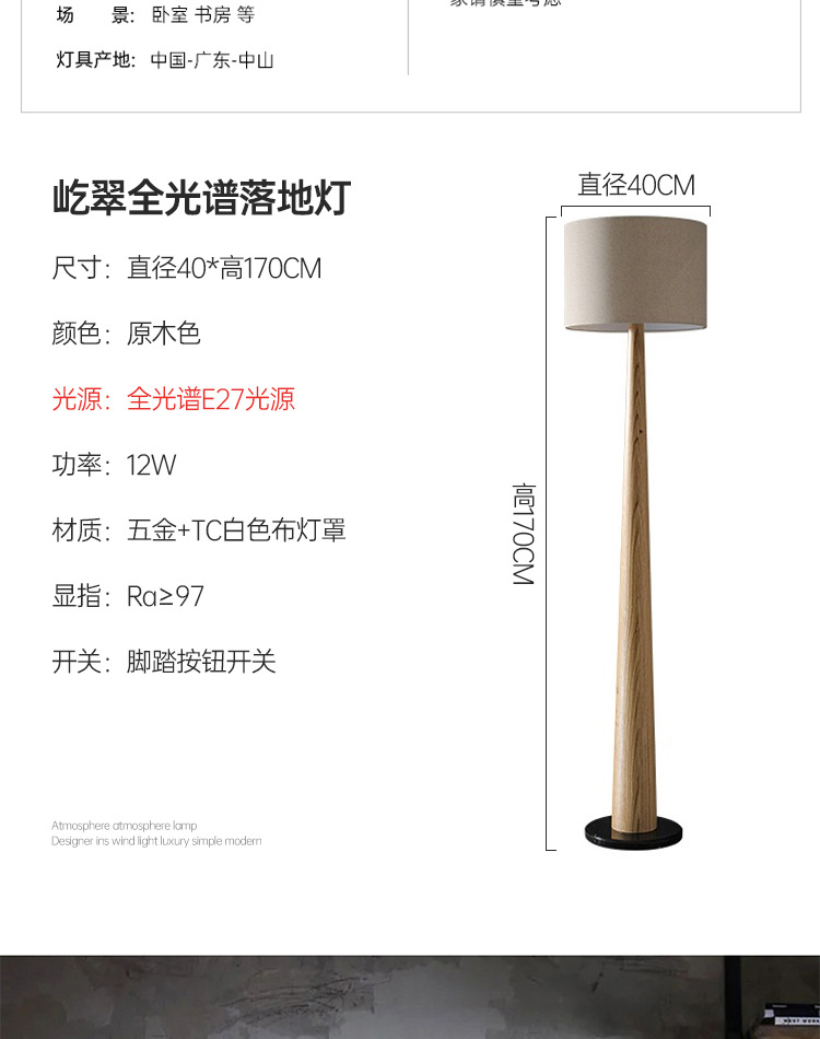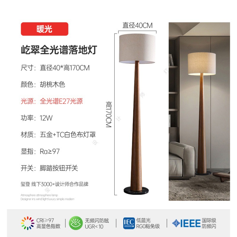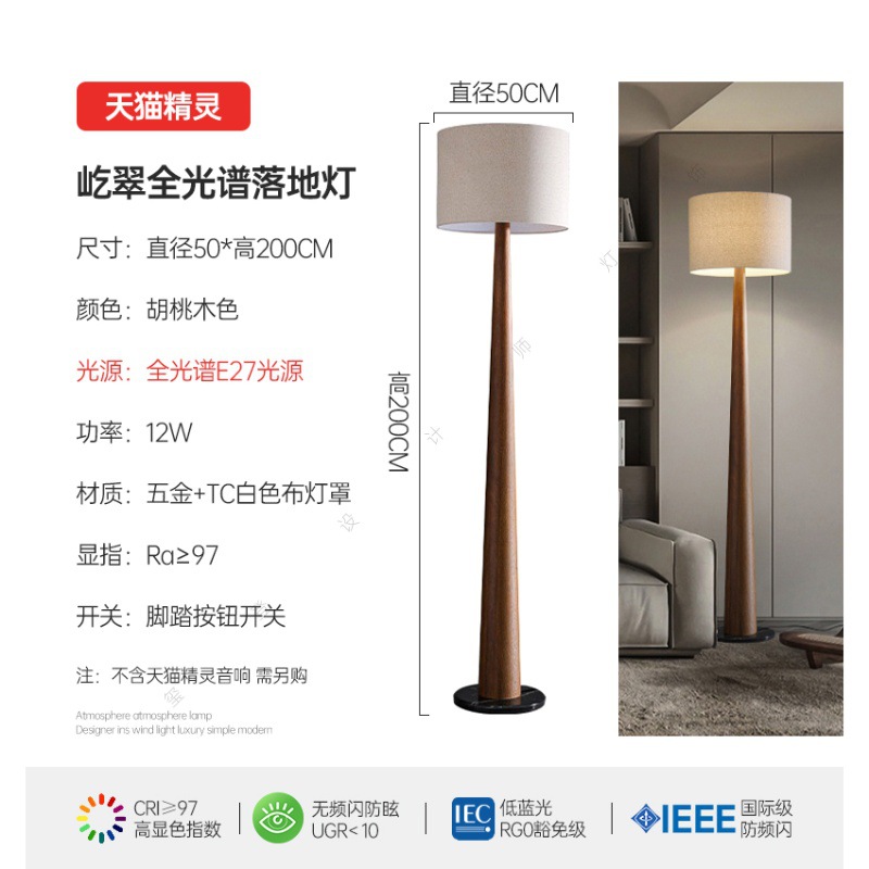 중세 스타일 거실 소파 사이드 플로어 램프 일본식 와비사비 호두 수직 분위기 램프 침실 하이 엔드 장식 램프스토어 가기